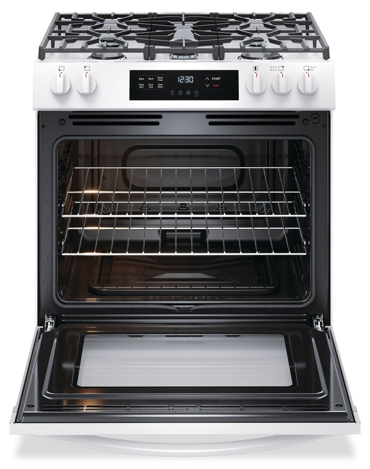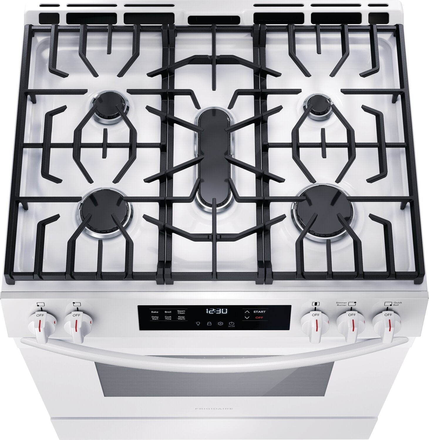 Surface de cuisson polyvalente à cinq brûleurs : Brûleur à ébullition rapide : Technologie de cuisson uniforme : Option de nettoyage à la vapeur : Très grand tiroir de rangement Store-MoreMC : Capuchons de brûleur lavables au lave-vaisselle : |