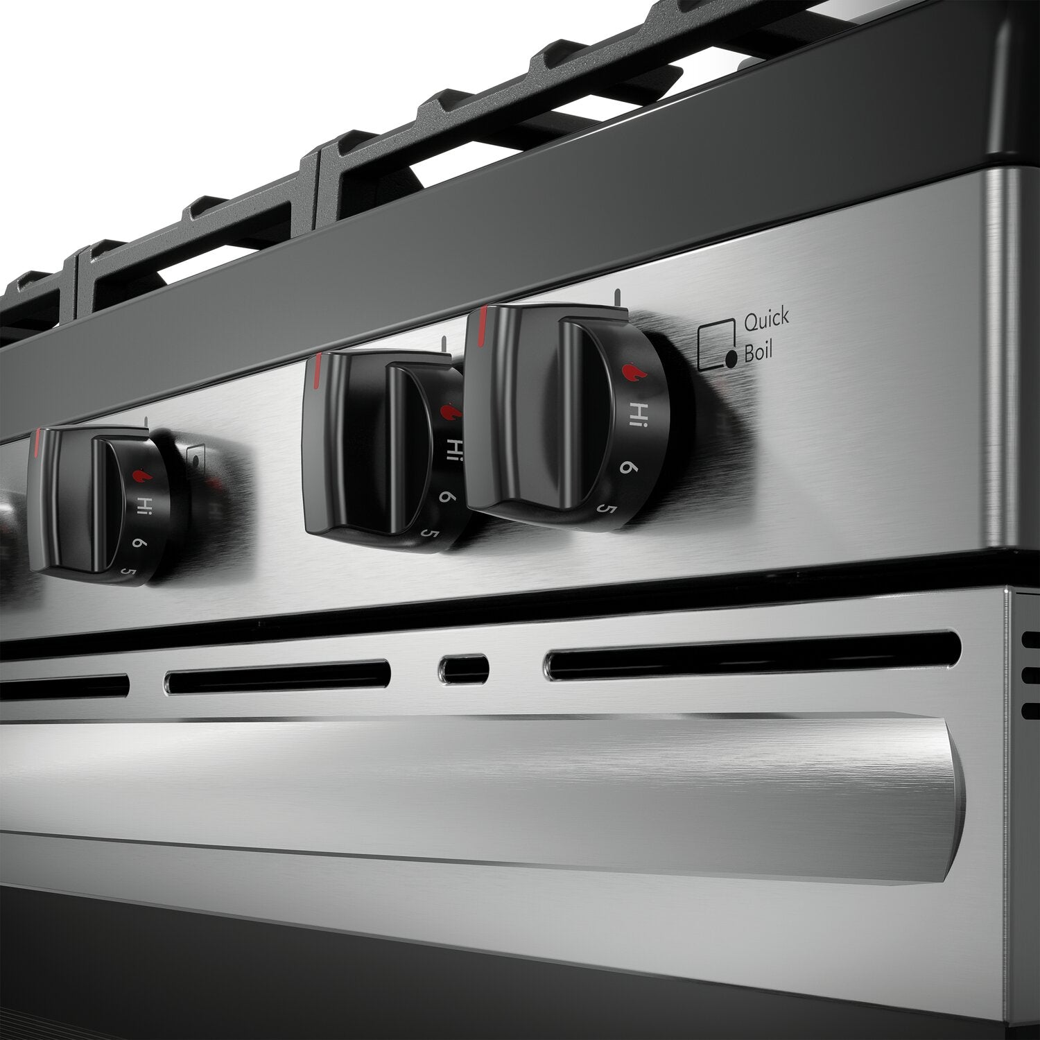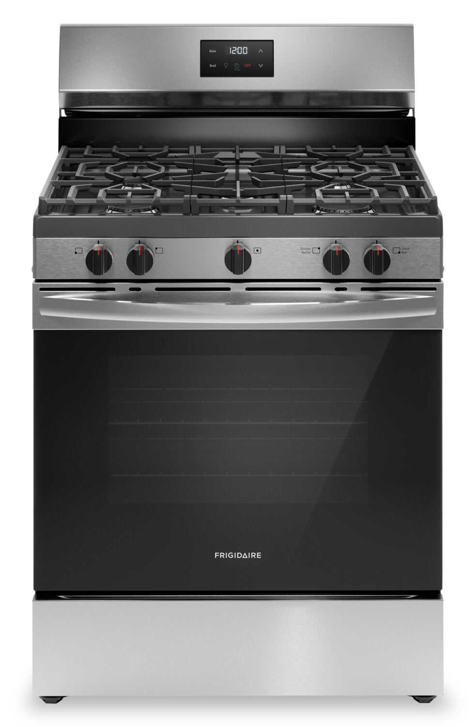 Ébullition rapide : Surface de cuisson polyvalente à cinq brûleurs : Technologie de cuisson uniforme : Grilles continues d'une bordure à l'autre : Très grand tiroir de rangement Store-MoreMC : Capuchons de brûleur lavables au lave-vaisselle : |