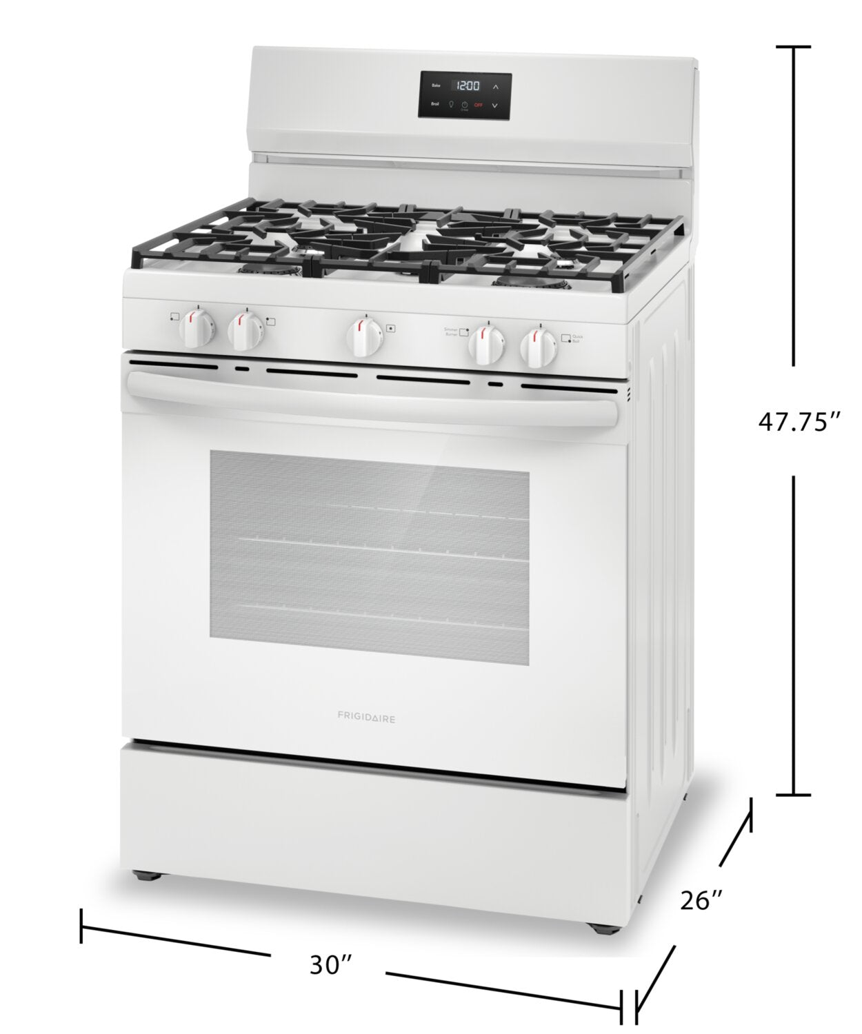 Ébullition rapide : Surface de cuisson polyvalente à cinq brûleurs : Technologie de cuisson uniforme : Grilles continues d'une bordure à l'autre : Très grand tiroir de rangement Store-MoreMC : Capuchons de brûleur lavables au lave-vaisselle : |