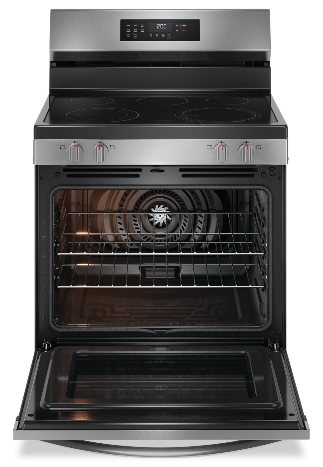 Friture à air chaud Air Fry : Cuisson à convection : Surface de cuisson polyvalente à cinq éléments : Élément de surface de cuisson EvenTempMC : Autonettoyage à une touche : Très grand tiroir de rangement Store-MoreMC : |