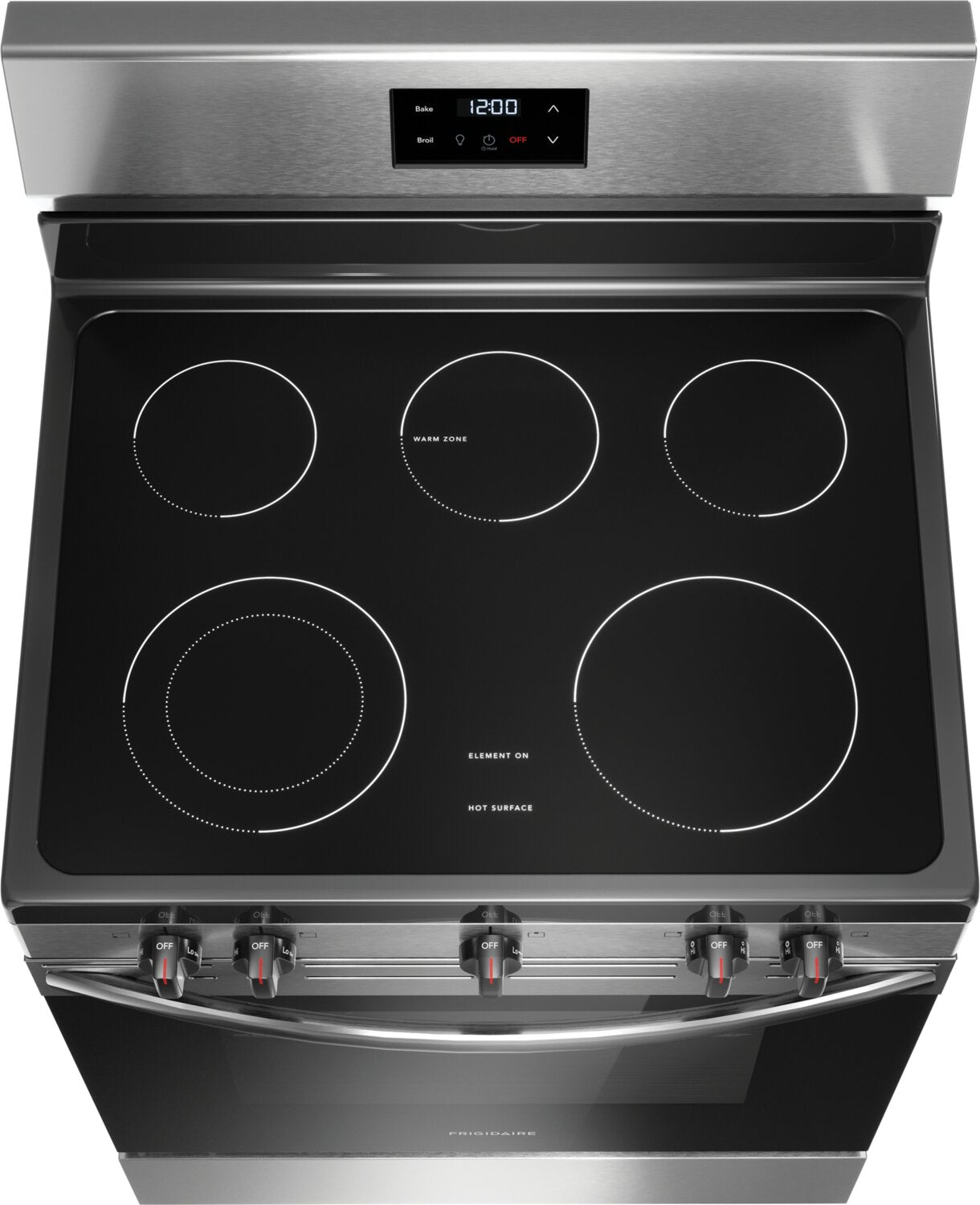 Élément à ébullition rapide : Surface de cuisson polyvalente à cinq brûleurs : Technologie de cuisson uniforme : Élément extensible double SpaceWiseMD : Très grand tiroir de rangement Store-MoreMC : Zone garde-au-chaud de la surface de cuisson : |