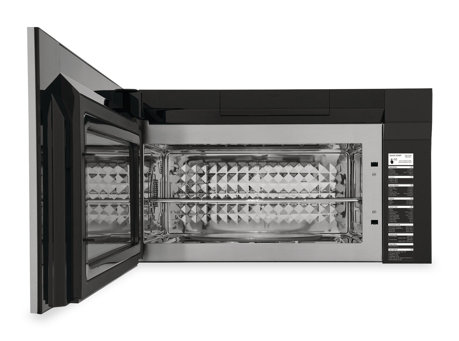 Cuisson par convection : Cuisson par capteur : Filtre à air PureAirMD : Ventilation puissante : Éclairage à DEL éclatant : Options de démarrage rapide : Voyant indicateur de remplacement du filtre : Porte à dégagement zéro : |