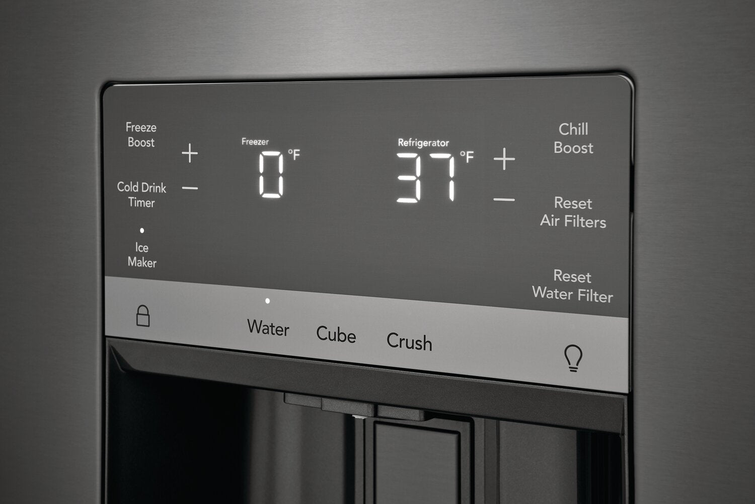 | Caractéristiques de l'électroménager | Distributeur de glaçons à l'extérieur, Distributeur d'eau à l'extérieur, Résistant aux traces de doigts, Machine à glaçons, Mode sabbat |