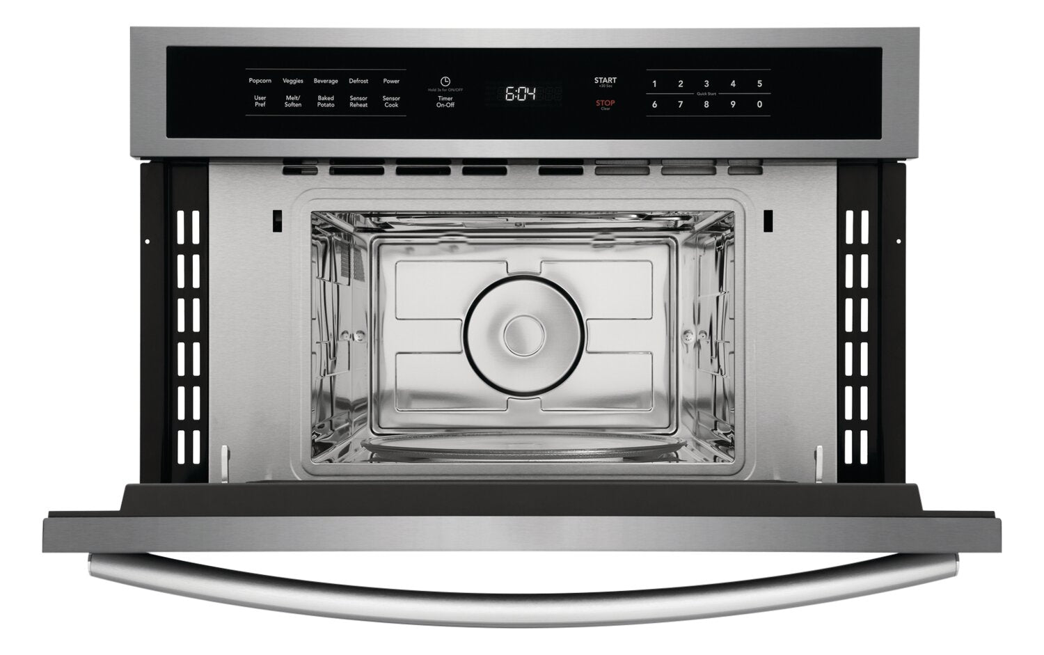 Technologie de cuisson par capteur : Porte rabattable pratique : Options de cuisson préréglées : Conception Fits-MoreMC : Éclairage intérieur éclatant : Acier inoxydable Smudge-ProofMD : |