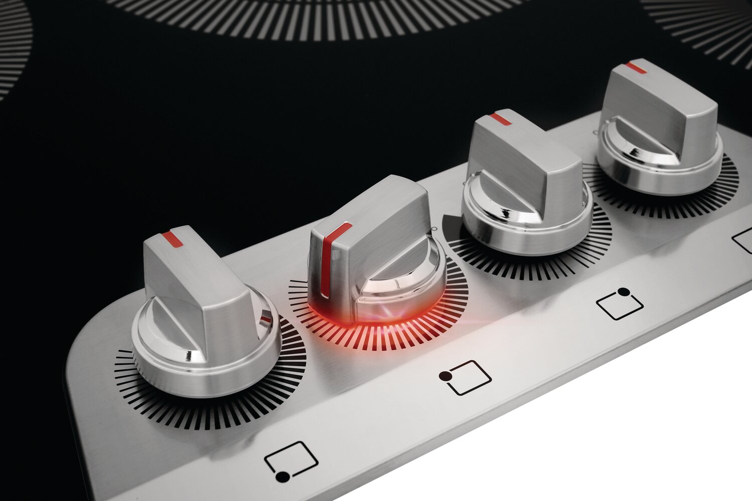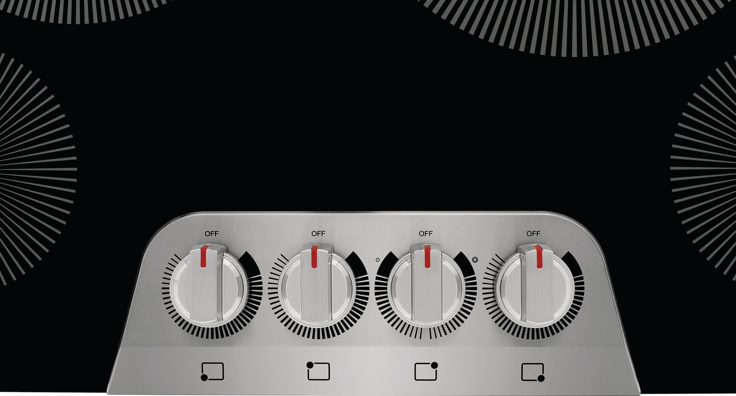 Résultats uniformes grâce à EvenTempMC Surface de cuisson polyvalente : Boutons rétroéclairés à DEL : Élément extensible double SpaceWiseMD : Zone garde-au-chaud : |