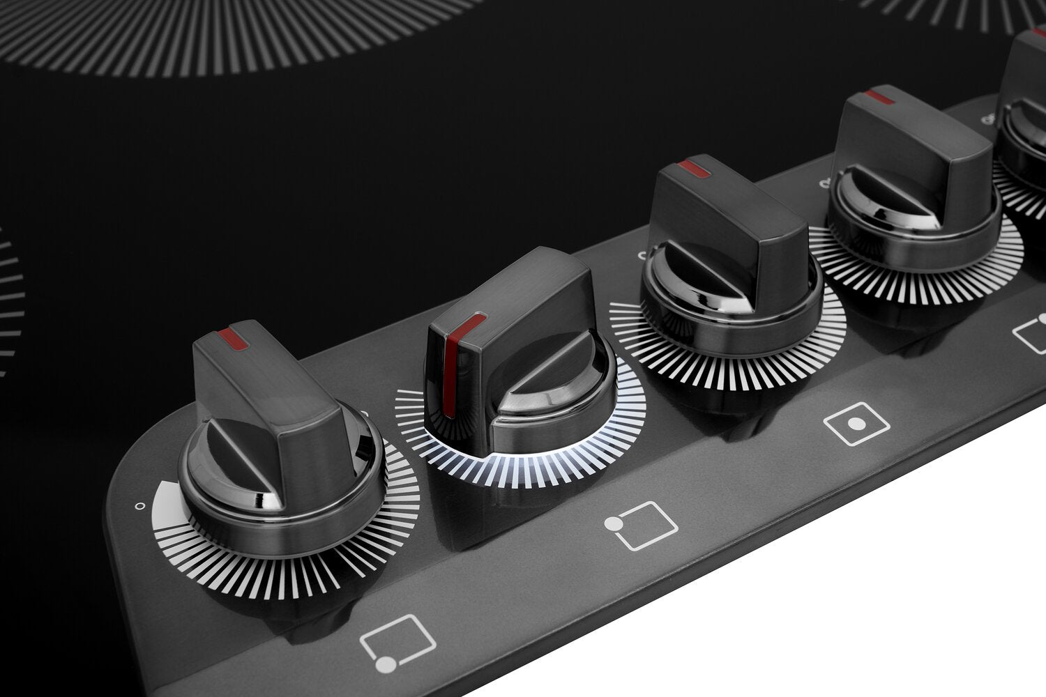 Résultats uniformes grâce à EvenTempMC Surface de cuisson polyvalente : Boutons rétroéclairés à DEL : Élément extensible double SpaceWiseMD : Zone garde-au-chaud : |