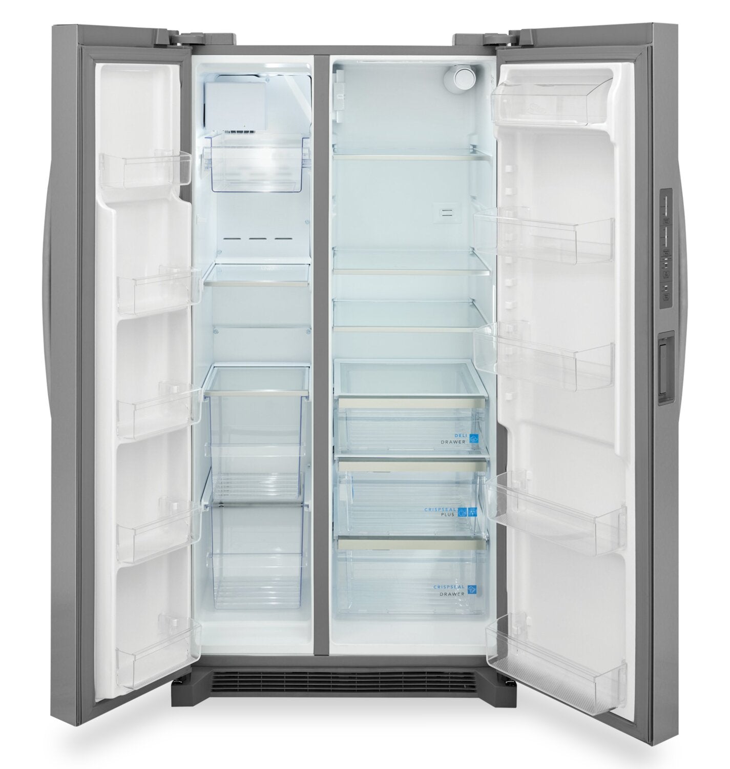 Bac à légumes CrispSealMD Plus : Capacité de rangement impressionnante : Distributeur d’eau sur le bord de la porte : Système de rangement SpaceWiseMD : Tiroir à charcuteries : Machine à glaçons dans le congélateur : Acier inoxydable Smudge-ProofMD : Appareil homologué ENERGY STARMD : |