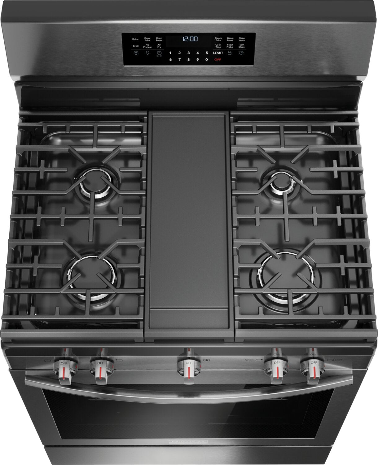 Convection totale : Sans préchauffage : Friture à air Air Fry : Surface de cuisson à cinq brûleurs avec plaque chauffante intégrée : Cuisson lente : Sonde de température : Deux options de nettoyage : |