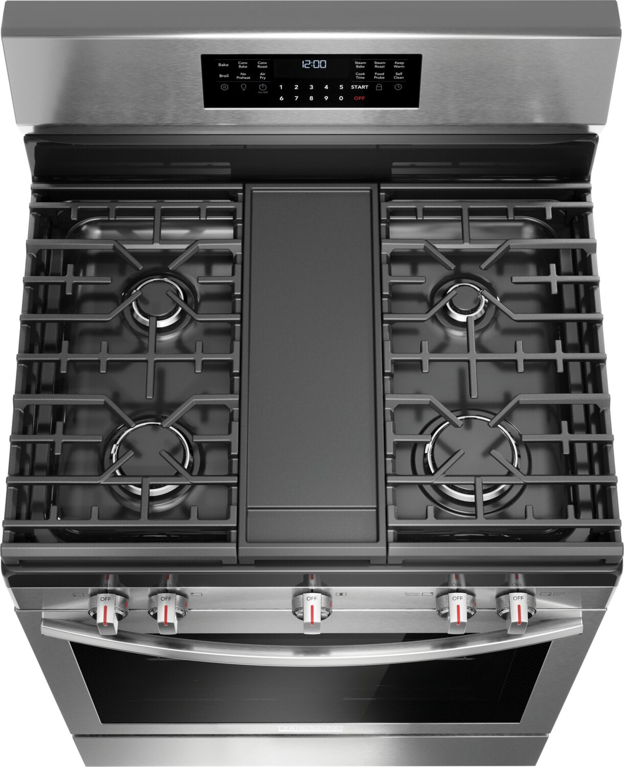 Convection totale : Sans préchauffage : Friture à air Air Fry : Surface de cuisson à cinq brûleurs avec plaque chauffante intégrée : Cuisson lente : Sonde de température : Deux options de nettoyage : |
