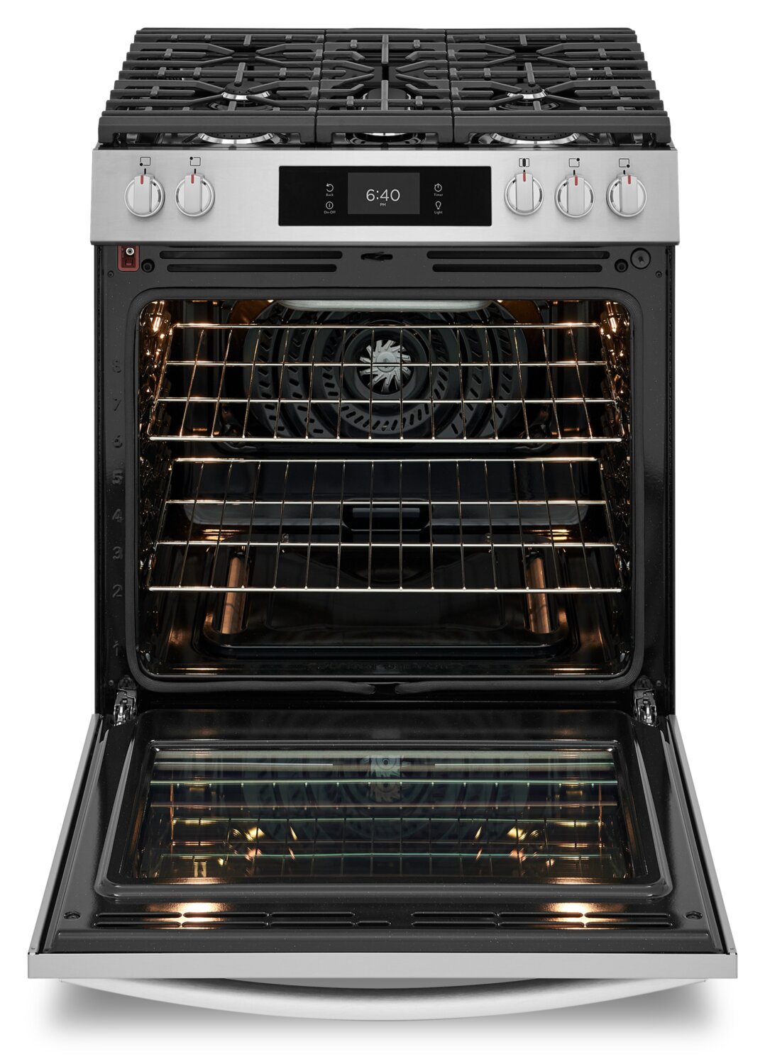 Pizza cuite sur pierre : Écran, pierre et pelle à pizza inclus : Plus de 15 façons de cuisiner avec la convection totale : Cinq brûleurs et plaque chauffante intégrée : Sans préchauffage : Friture à air : |
