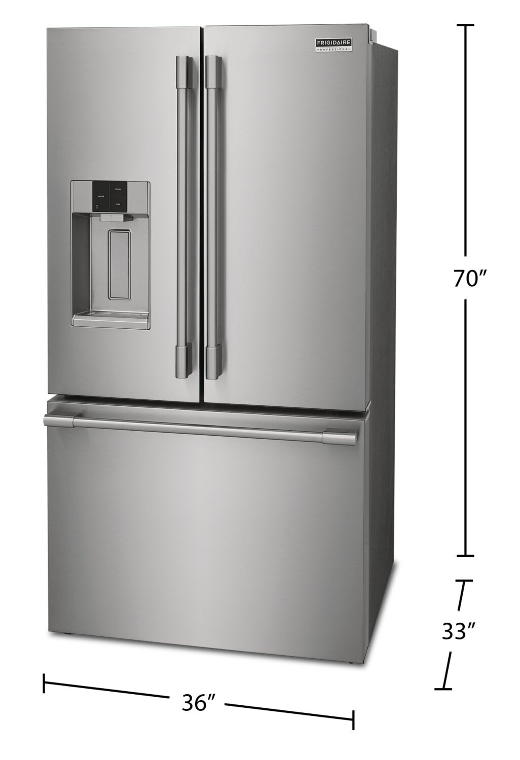 Largeur : 36 po (91,4 cm) Hauteur : 70 po (177,8 cm) Profondeur : 33 po (83,8 cm)