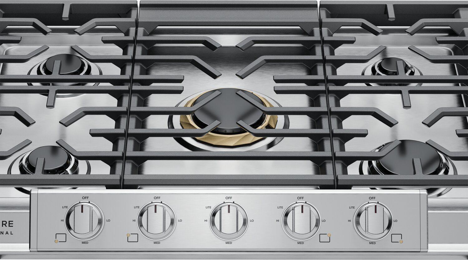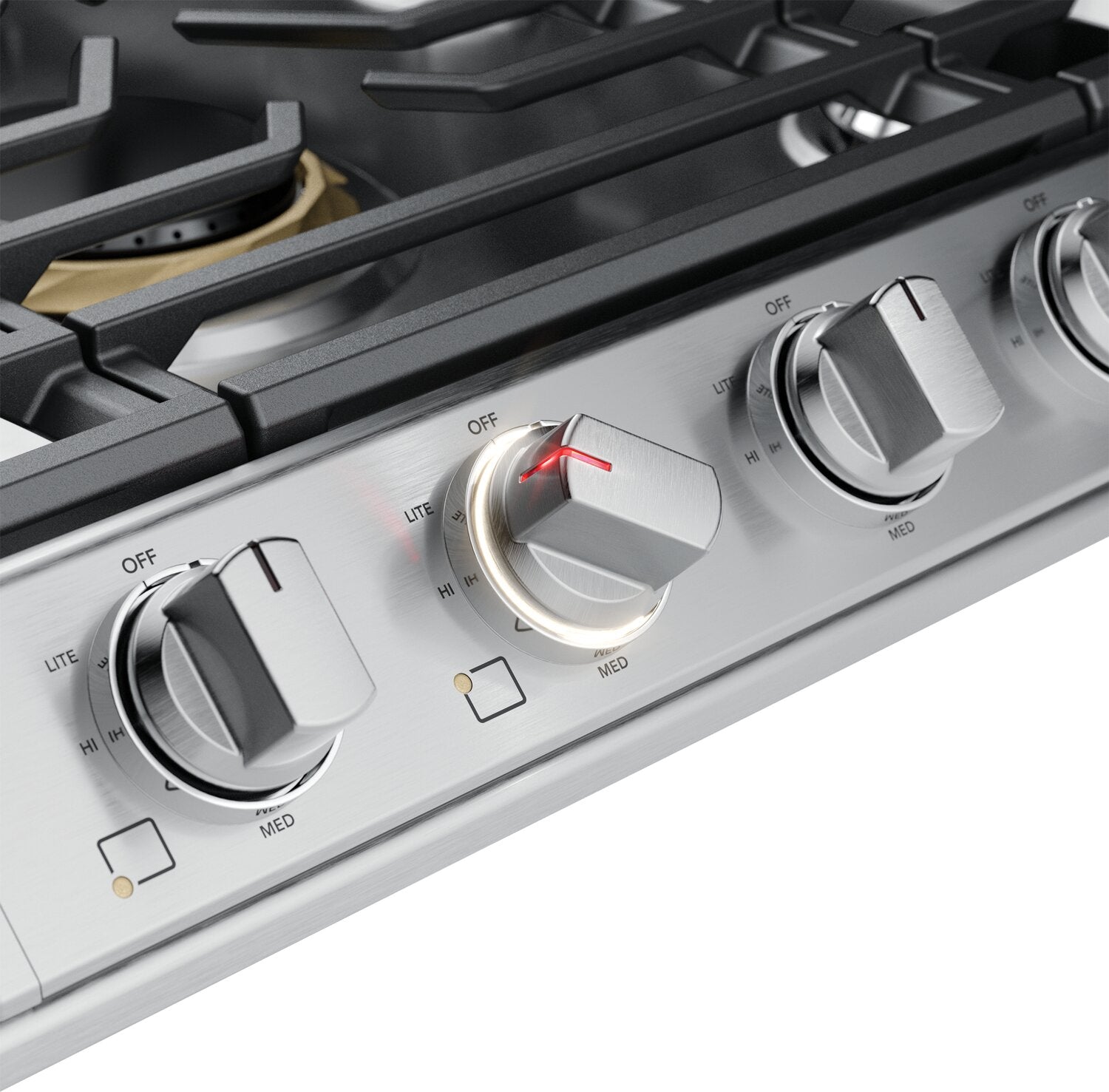 Brûleur EvenTempMC : 5 brûleurs : Boutons rétroéclairés à DEL : Grilles lavables au lave-vaisselle : Grilles en fonte : Conception avec commandes à l’avant : |