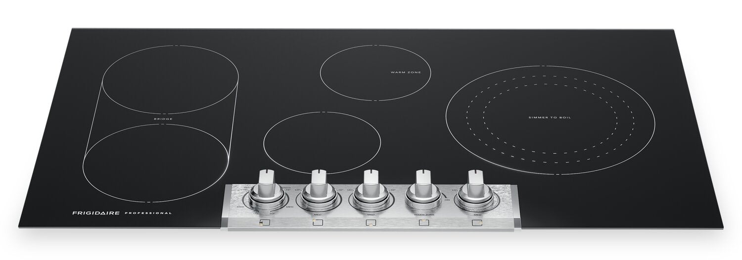 Élément EvenTempMC : Élément pont : Zone garde-au-chaud : Boutons rétroéclairés à DEL : Conception avec commandes à l’avant : Surface de cuisson en verre facile à nettoyer : |