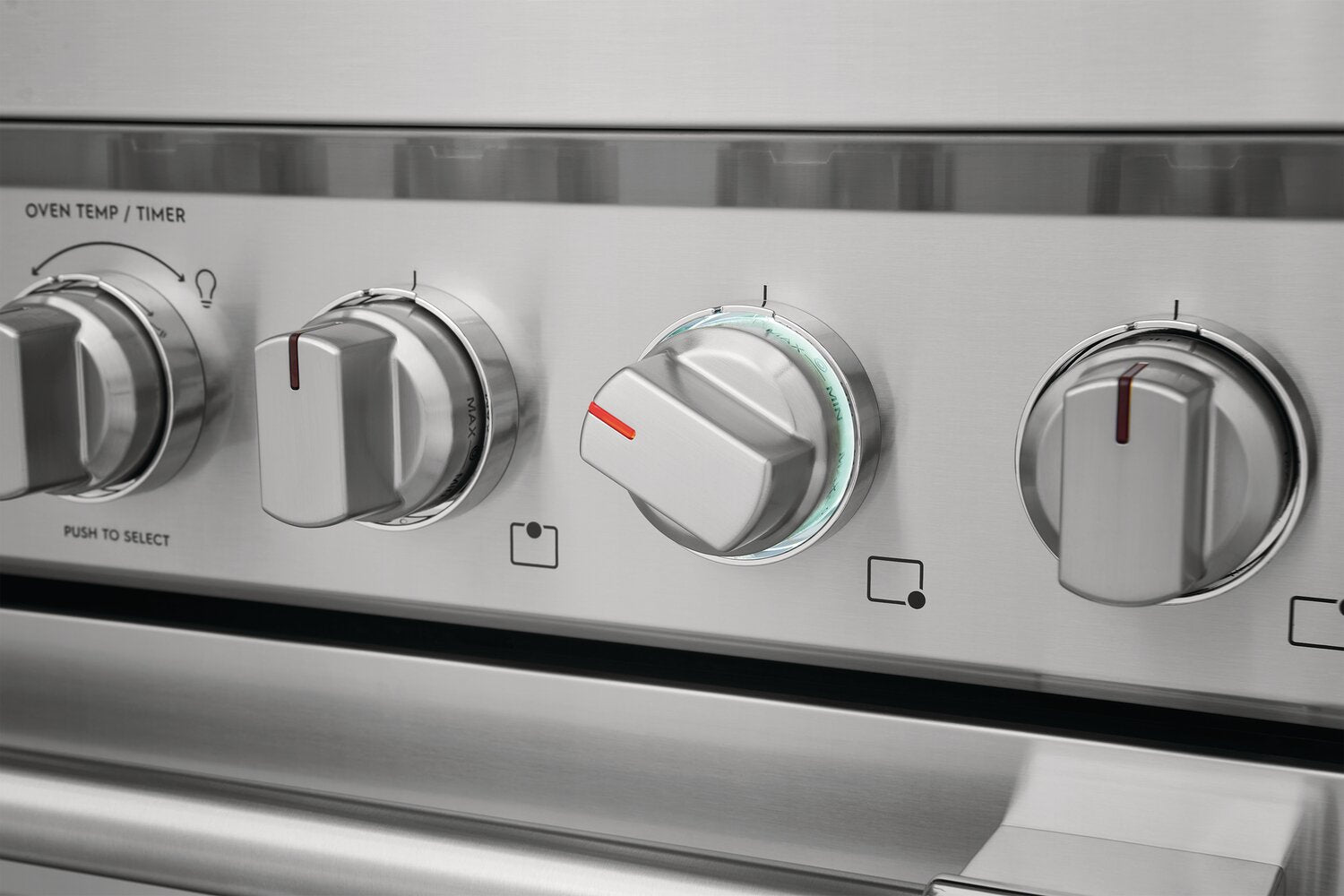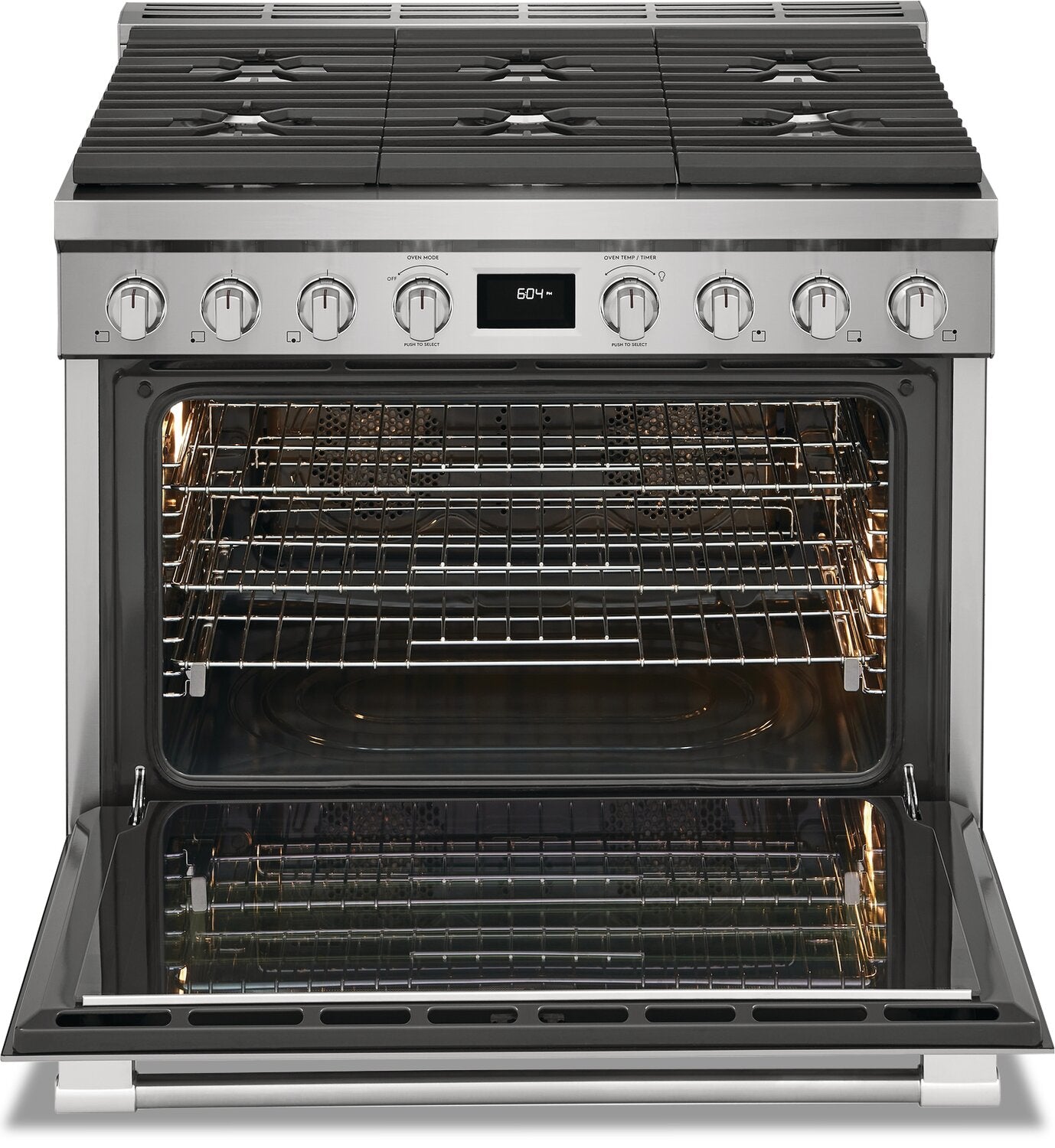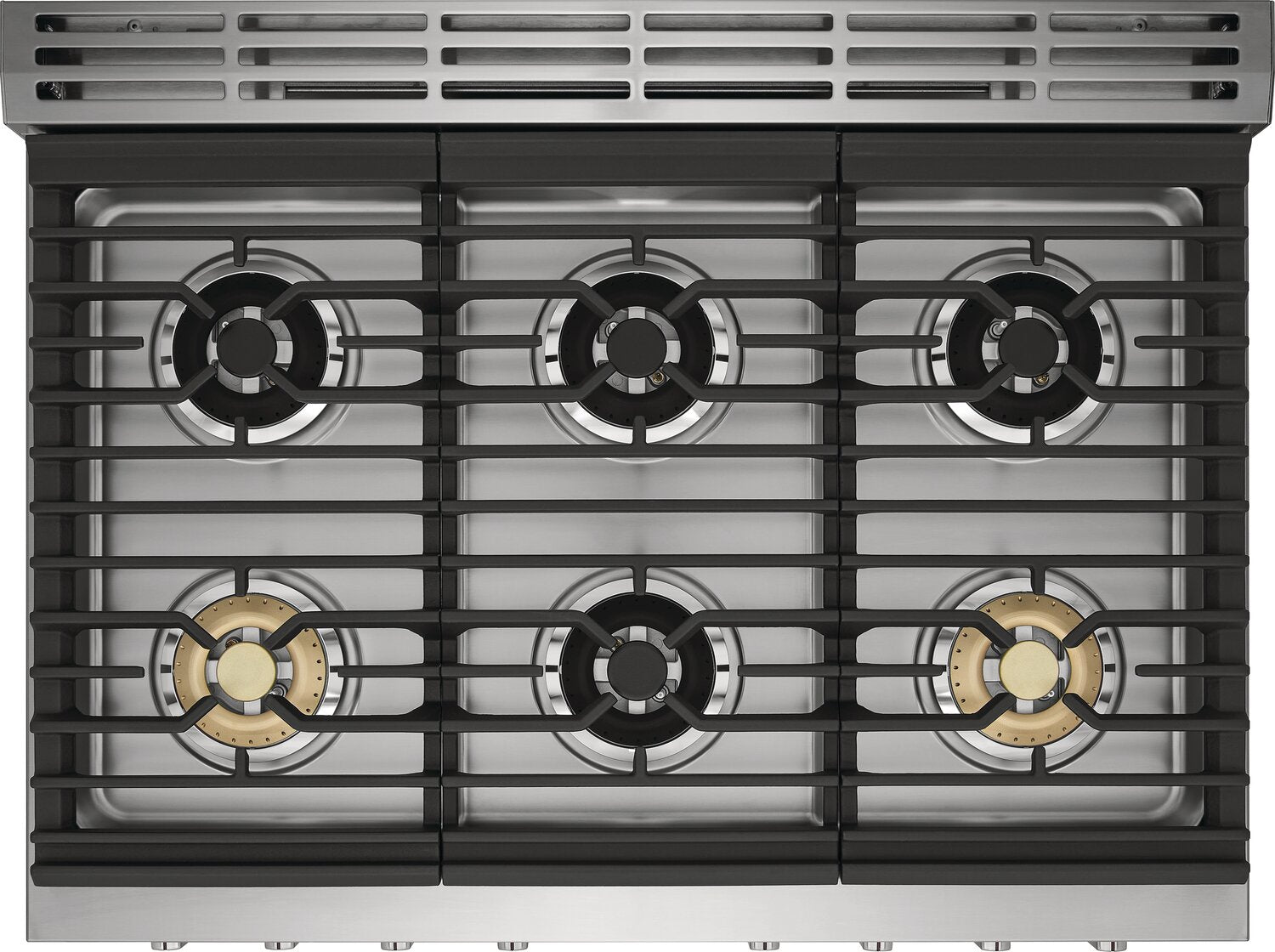 Surface de cuisson polyvalente à six brûleurs : Le meilleur des deux mondes avec la fonctionnalité hybride : Grilles continues : Convection à deux ventilateurs : Fini les devinettes : Nettoyage à la vapeur en une heure : |