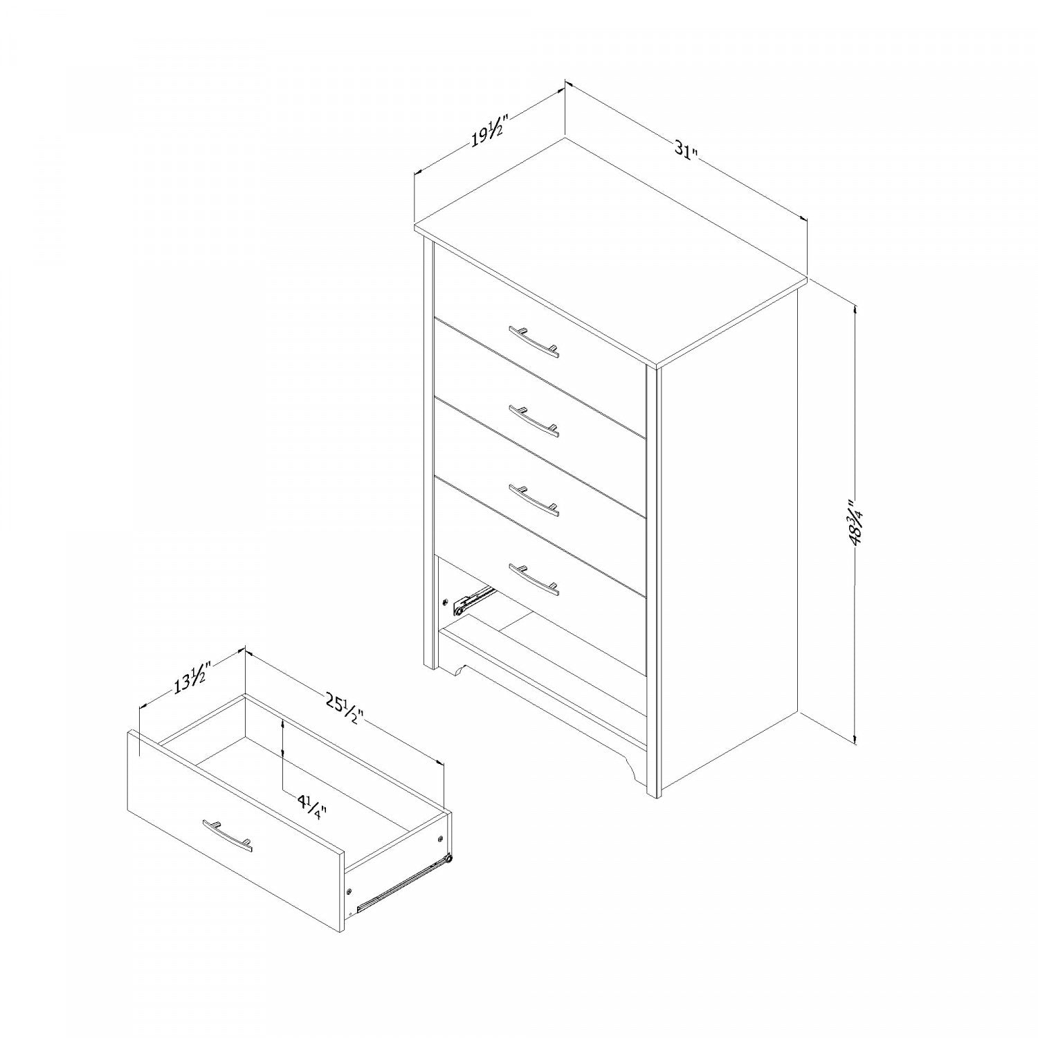Fusion Commode 5 Tiroirs - Blanc Solide