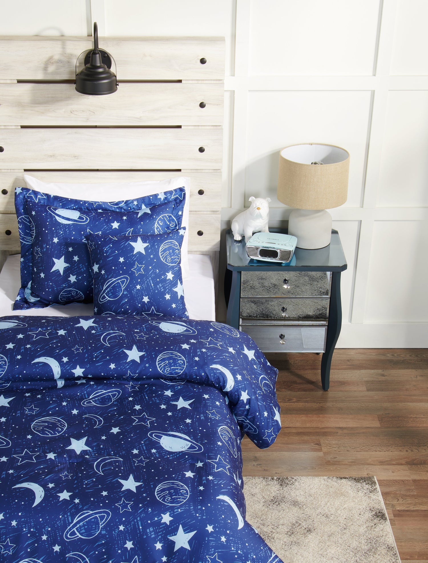 | Motif | Ensemble réversible à motif au thème de l’espace et d’étoiles de l’autre côté |