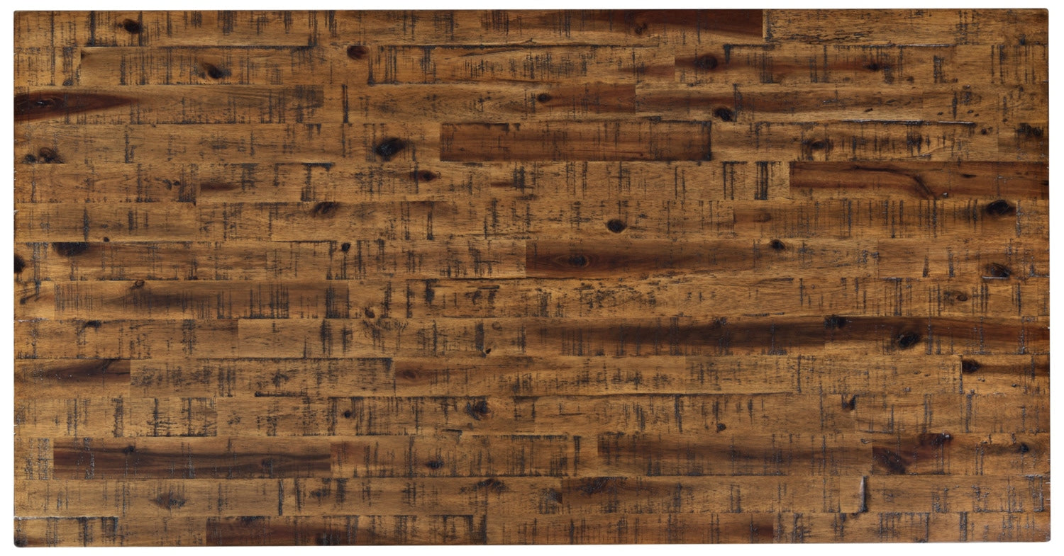 - D'une brillance rustique, cette conception met la beauté naturelle de l'acacia en valeur.