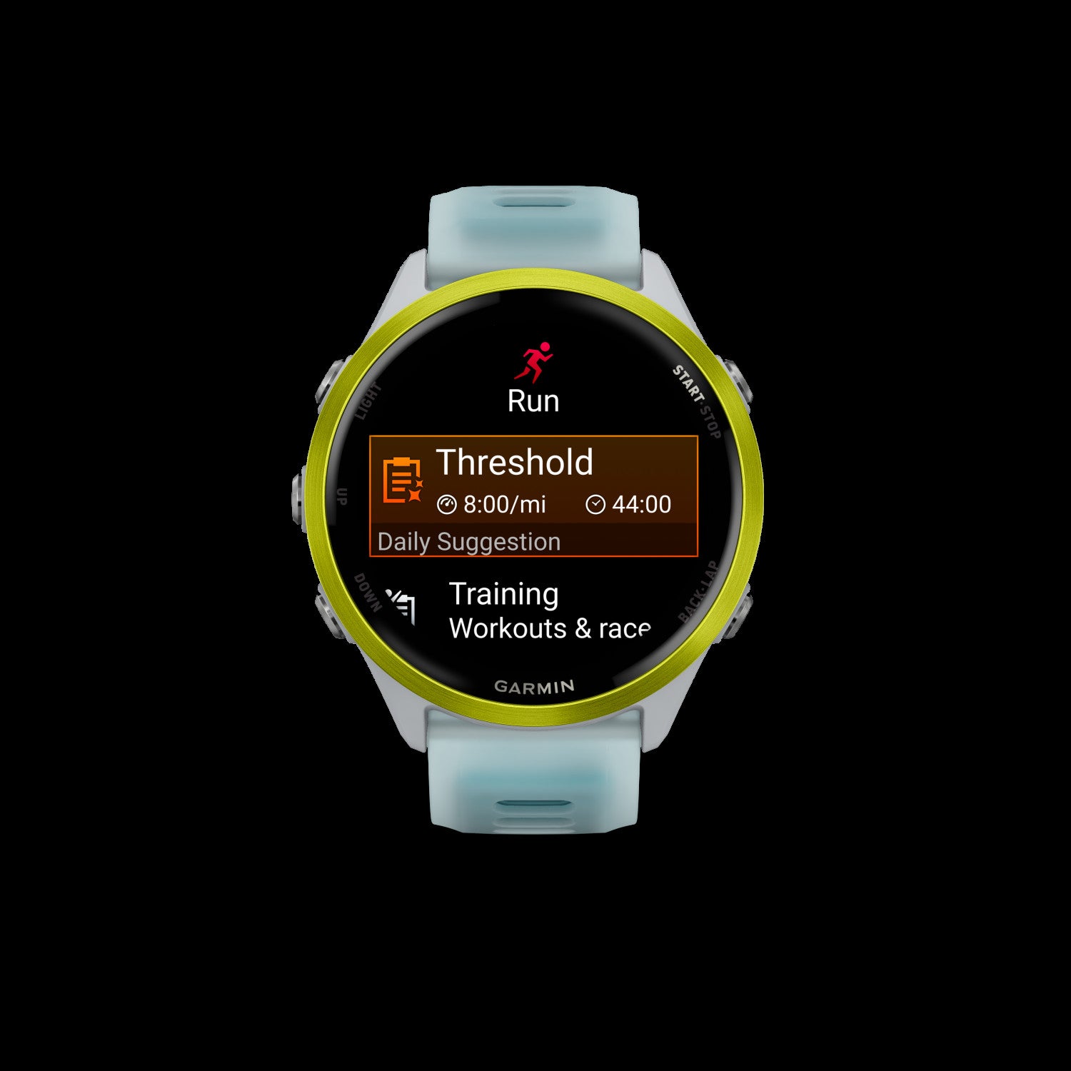 | Key Features | Forerunner 570 Smartwatch 47mm GPS : ecran AMOLED, lunette en aluminium, haut-parleur, microphone, Garmin Pay, streaming musical, preparation a l'entrainement, coach sommeil, dynamique de course |