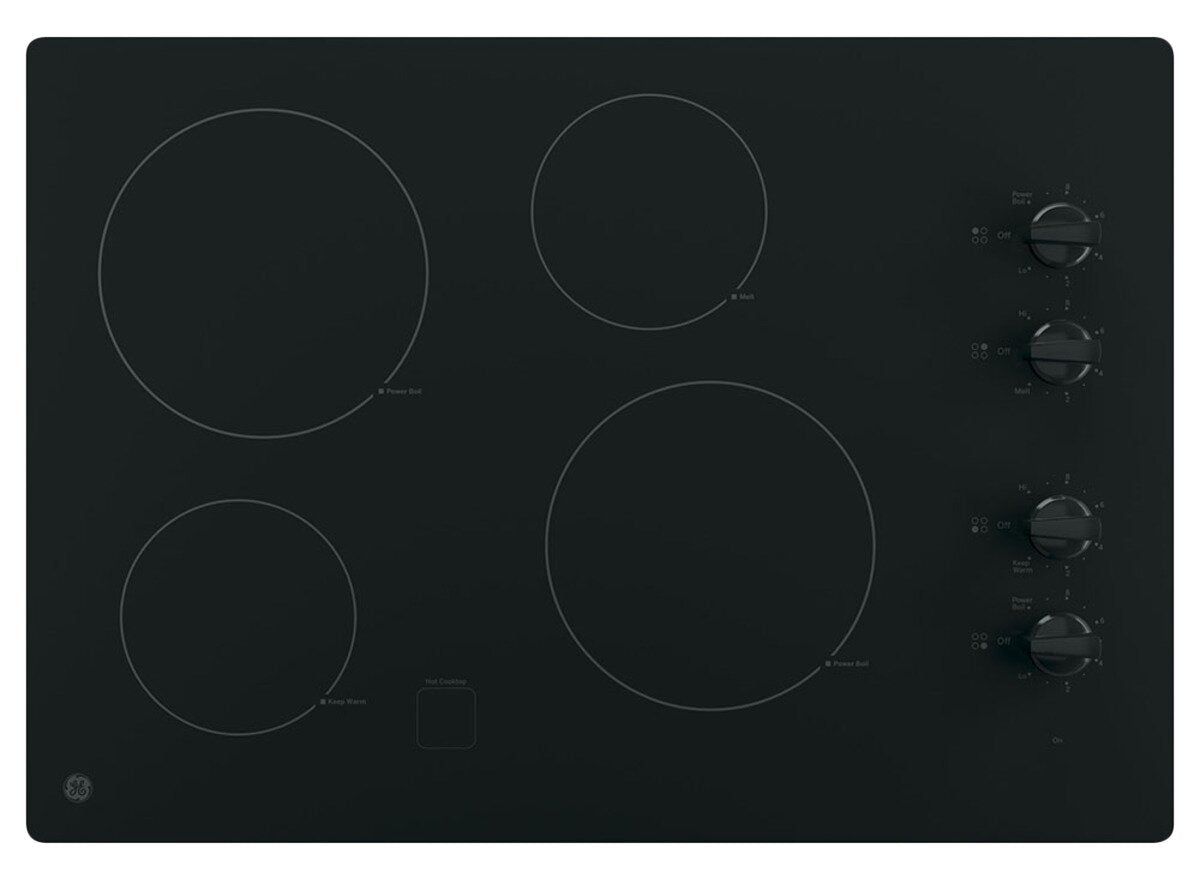 Voyants de surface chaude : Quatre éléments de cuisson radiants sur la surface de cuisson : Réglage garde-au-chaud : Réglage pour fondre : Éléments PowerBoilMC : Bordure en acier inoxydable : |