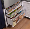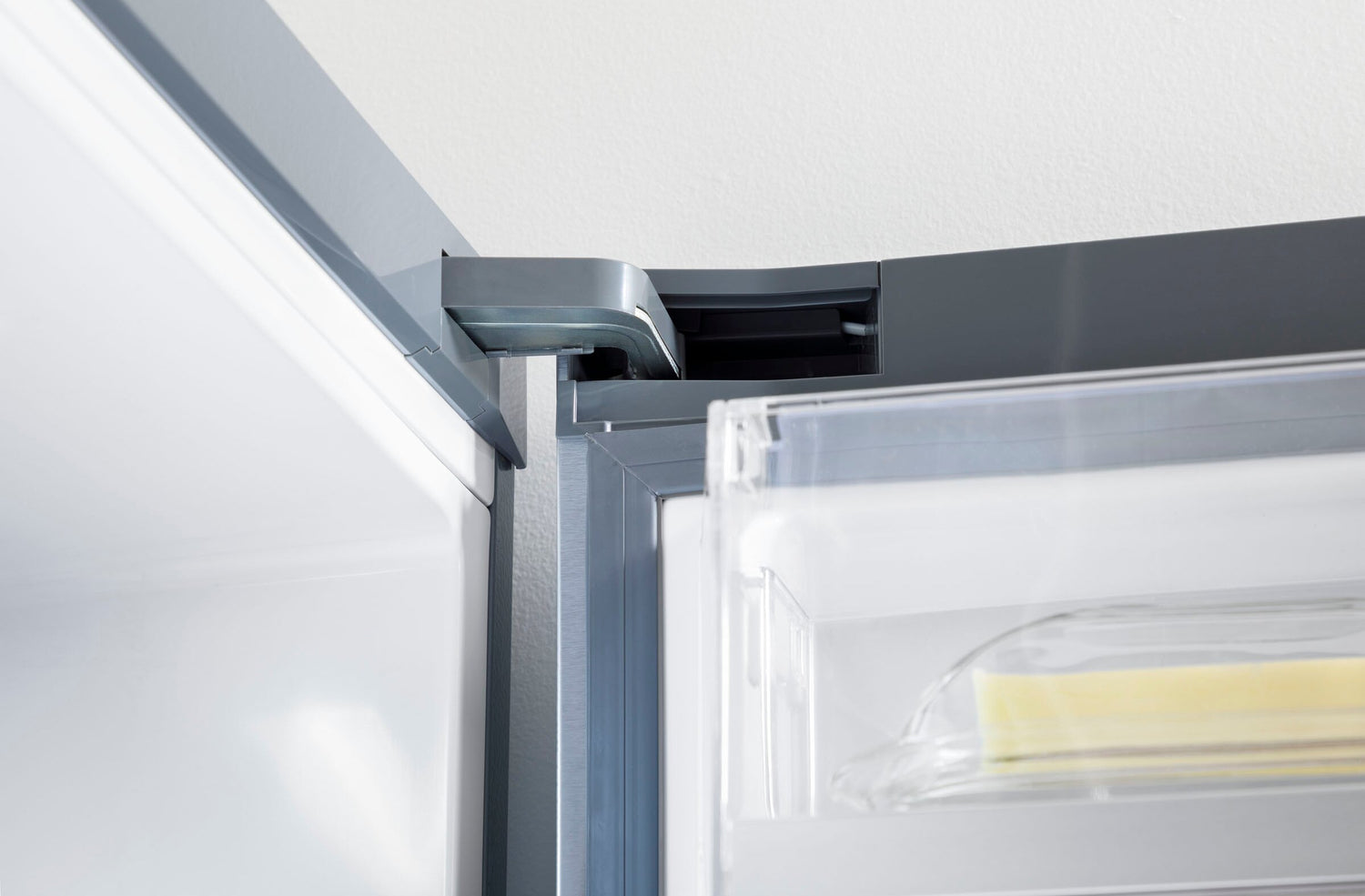 Tablettes en verre d'un bord à l'autre : Largeur étroite : Acier inoxydable résistant aux traces de doigts : Profondeur de comptoir : Tiroirs de rangement dans le congélateur : |