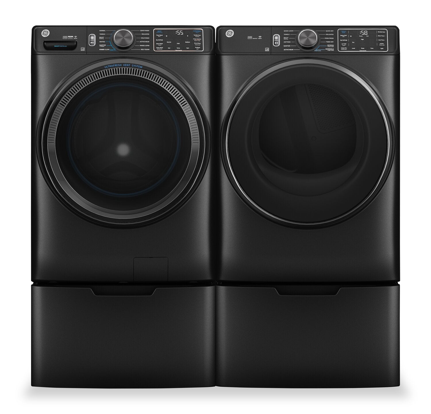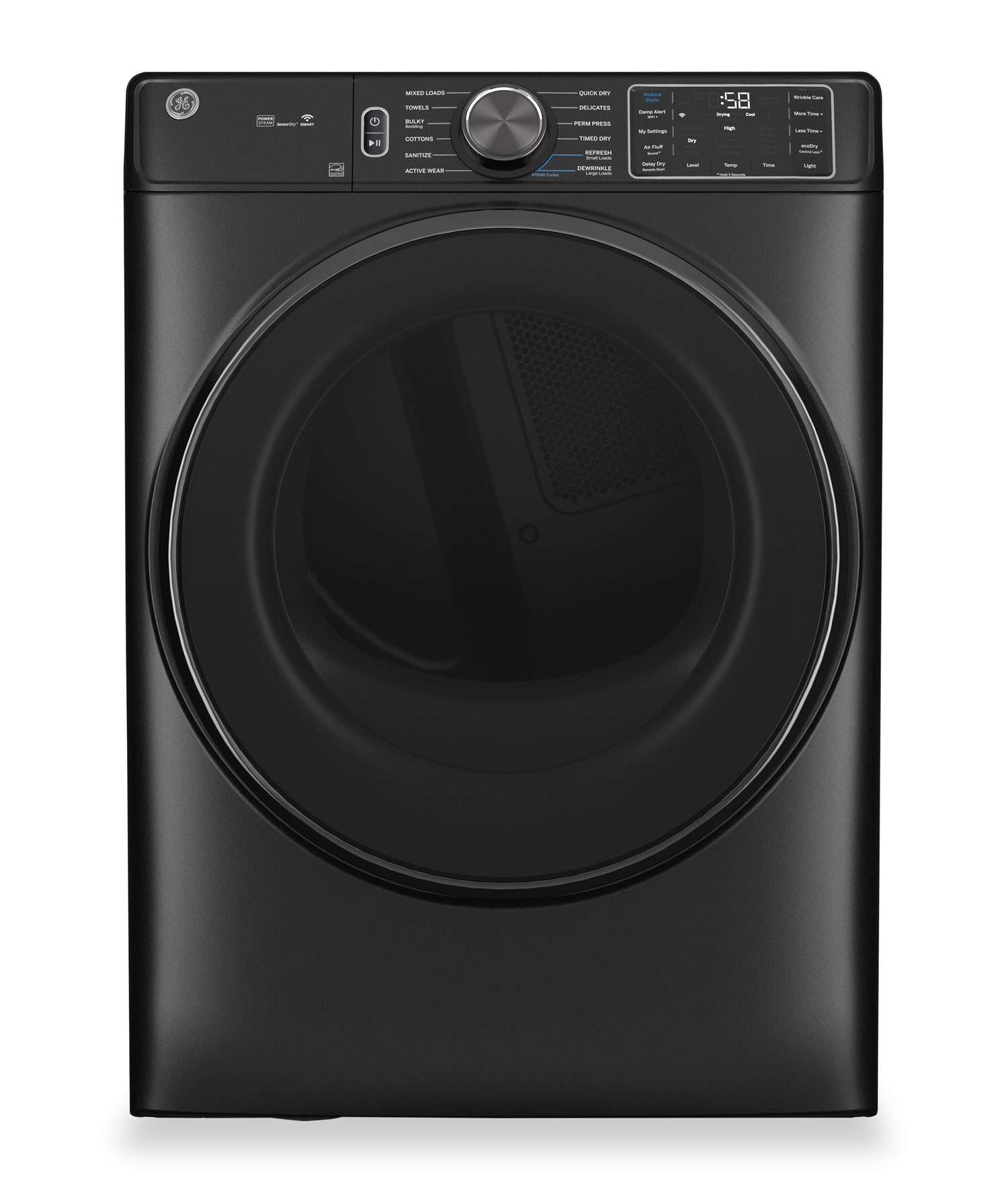 Wi-Fi alimenté par l’application SmartHQMC : Alerte de séchage humide : Cycle de désinfection : Capteur Vent Sensor : Antifroissement : Technologie PowerSteam : Séchage rapide : Réduction de l’électricité statique : |