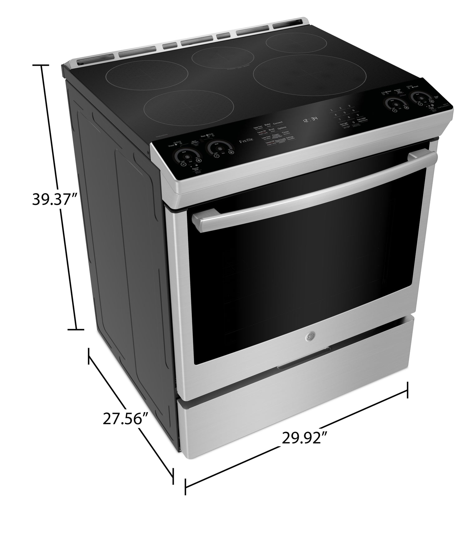 Surface de cuisson à induction : Four à convection européenne véritable : Technologie ChefConnect : Option d'autonettoyage à la vapeur : Fini résistant aux traces de doigts : Tiroir de rangement : |