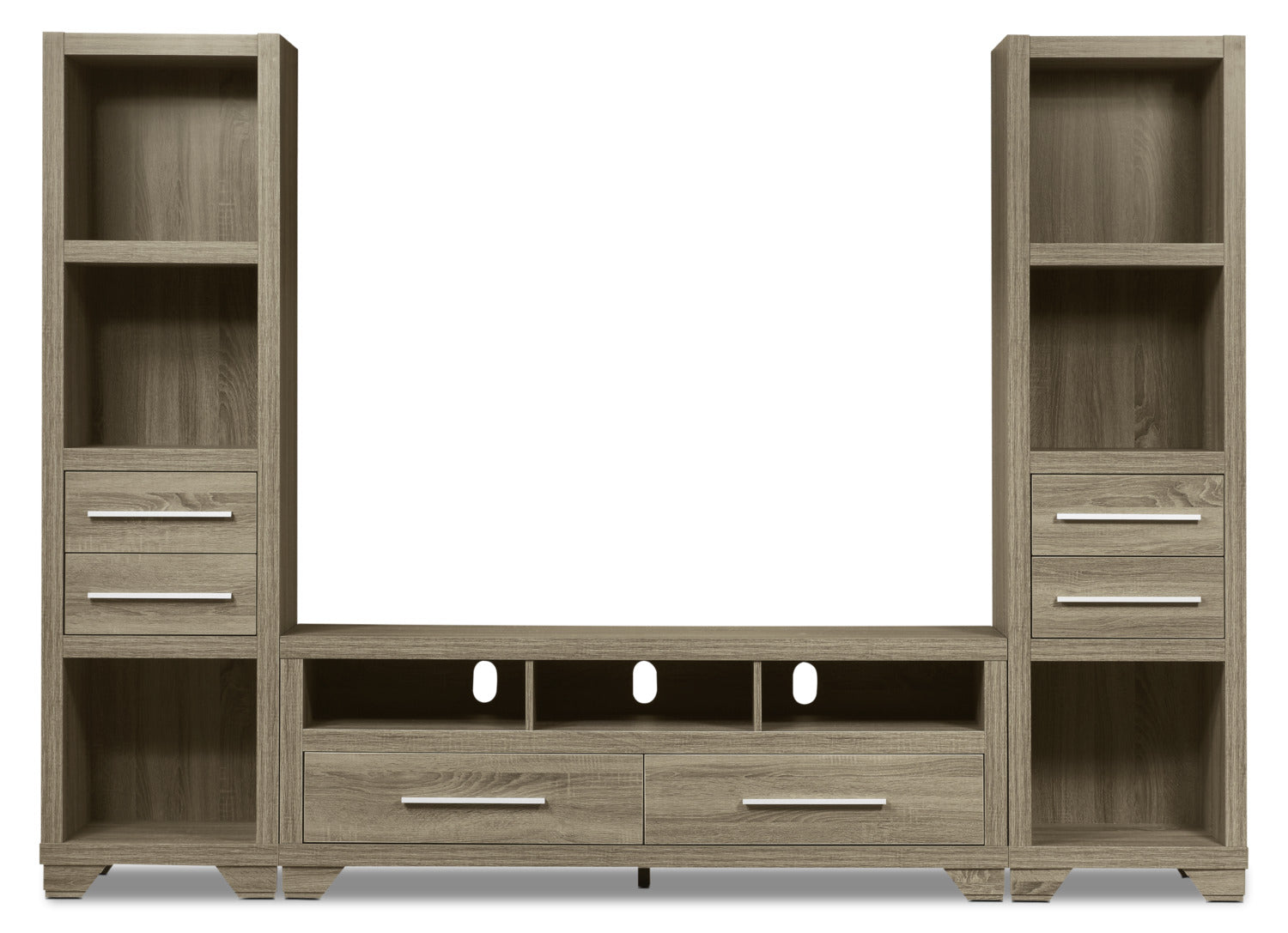 - Le doux fini gris confère une touche champêtre à votre salle de séjour.