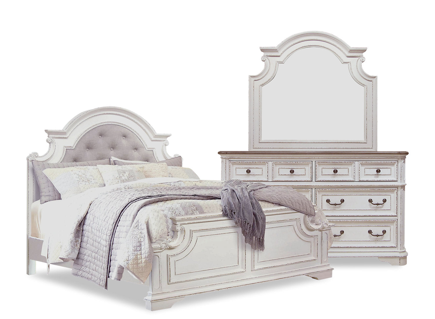 Miroir de commode de chambre à coucher Grace - blanc antique