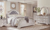 Lit à panneau Grace en bois et en tissu avec tête de lit et cadre de lit, blanc antique - format grand lit