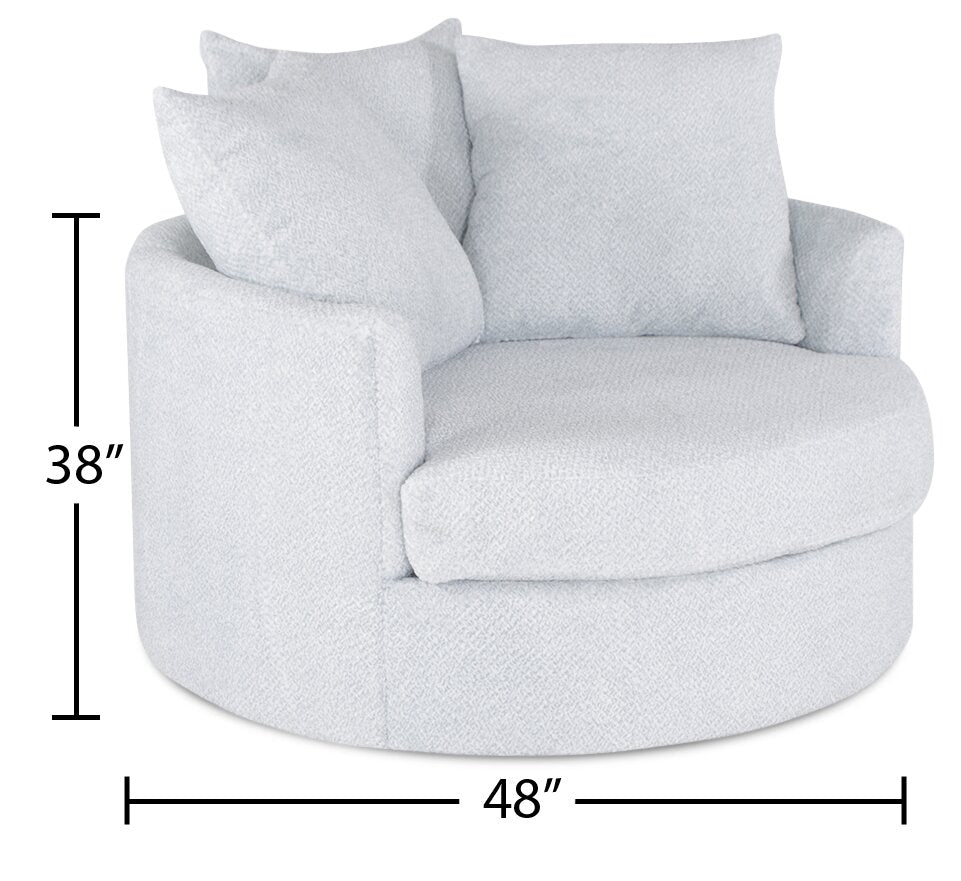 | Détails décoratifs | Les coussins moelleux et le séduisant tissu en chenille confèrent une apparence luxueuse à ce fauteuil. |