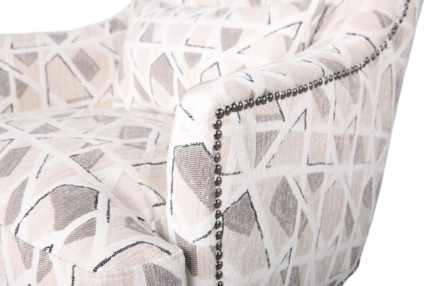 | Détails décoratifs | Des clous décoratifs de couleur laiton ornent la base et le dossier du fauteuil pour une touche de style élégant. |