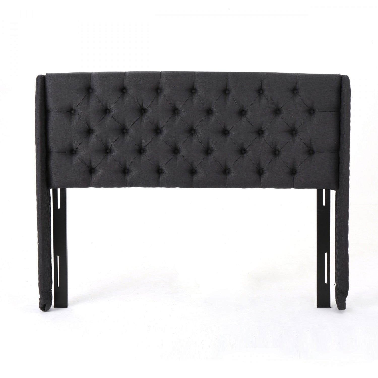 Hansen Tete De Lit Capitonnee A Dossier Aile Avec Boutons, Taille King, Noir