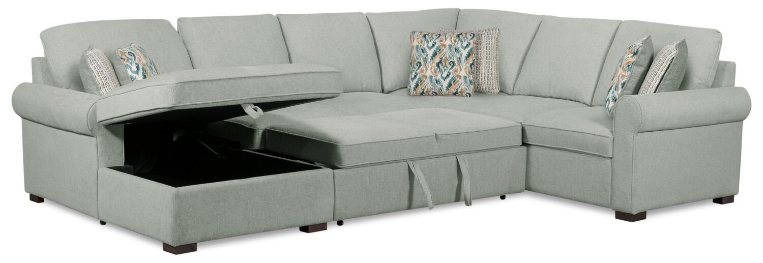 Sofa-lit sectionnel de gauche Haven de Scott Living 3 pièces en tissu de chenille avec fauteuil long de rangement - bleu écume de mer