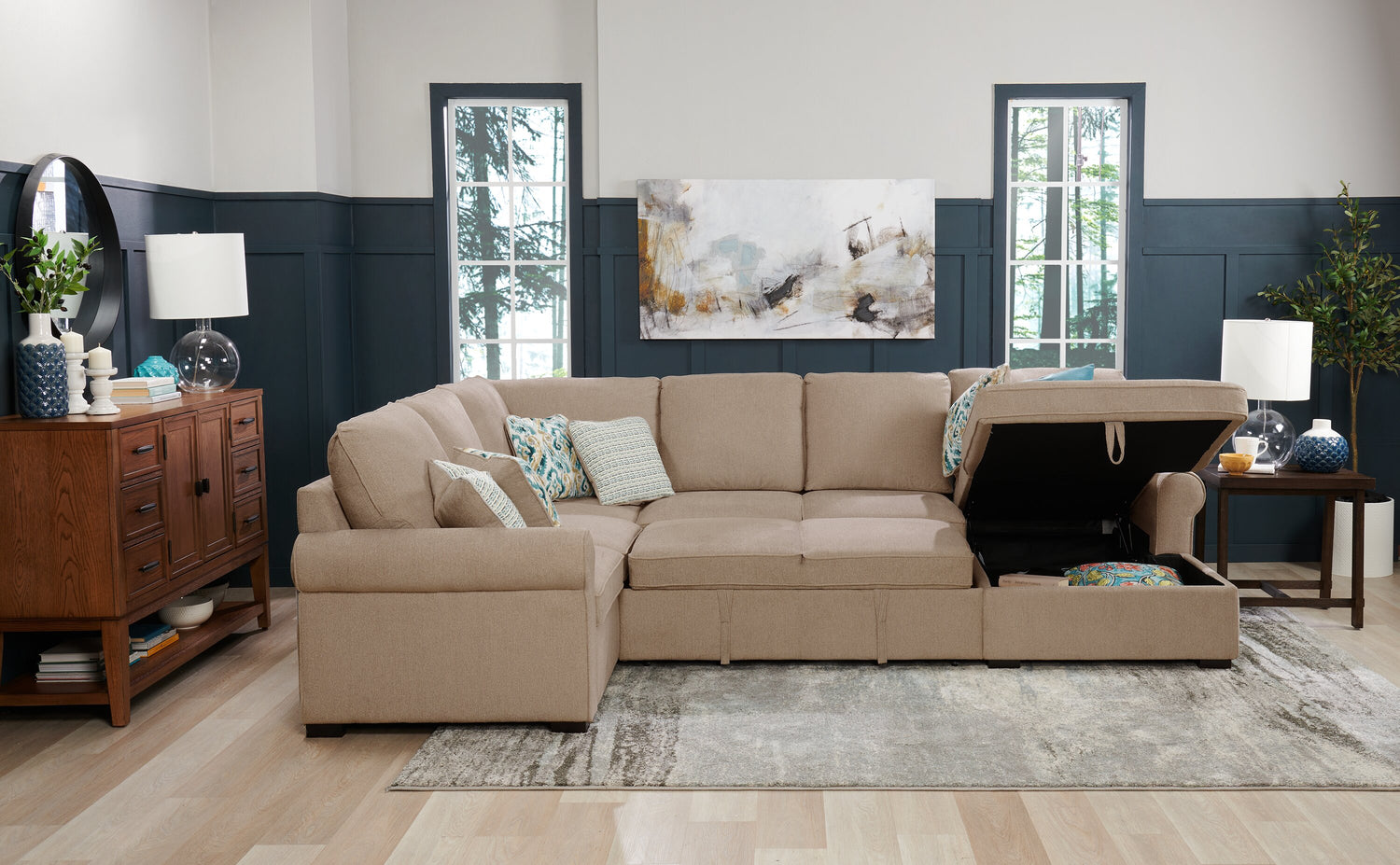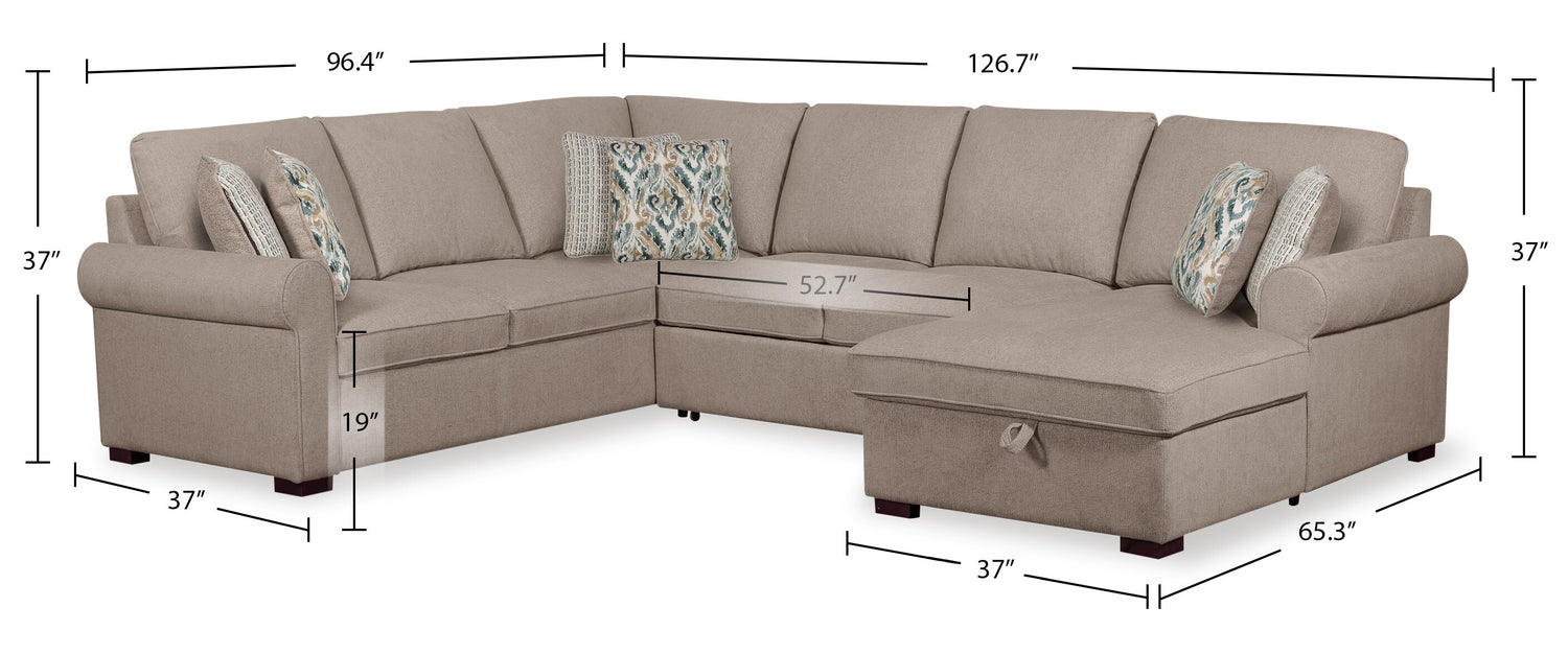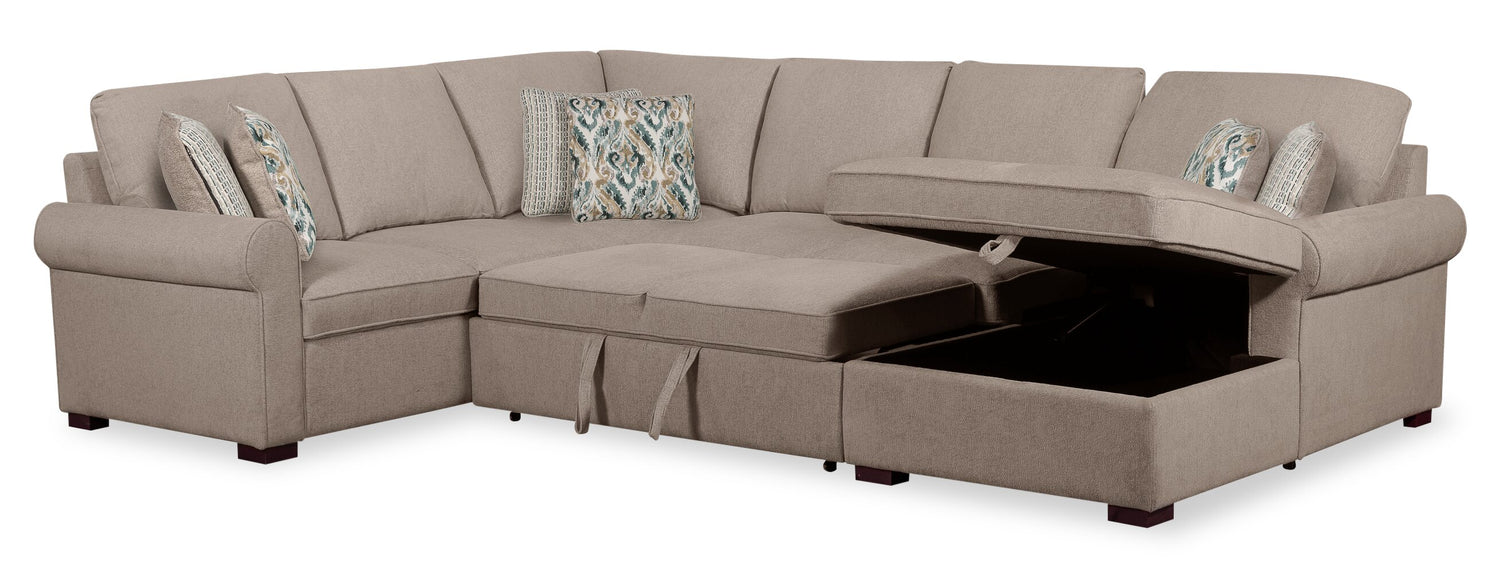Sofa-lit sectionnel de droite Haven de Scott Living 3 pièces en tissu de chenille avec fauteuil long de rangement - taupe