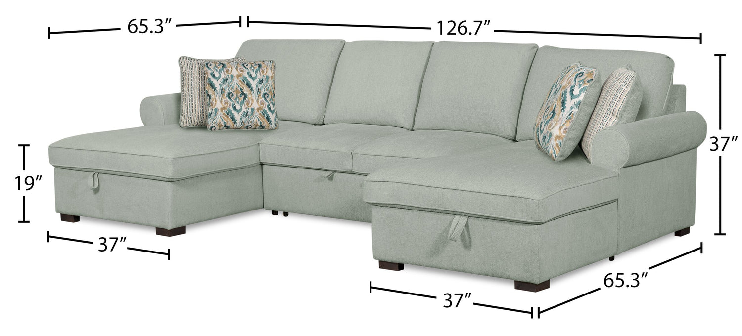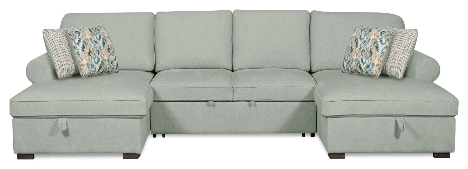 Sofa-lit sectionnel Haven de Scott Living 3 pièces en tissu de chenille avec 2 fauteuils longs de rangement - bleu écume de mer