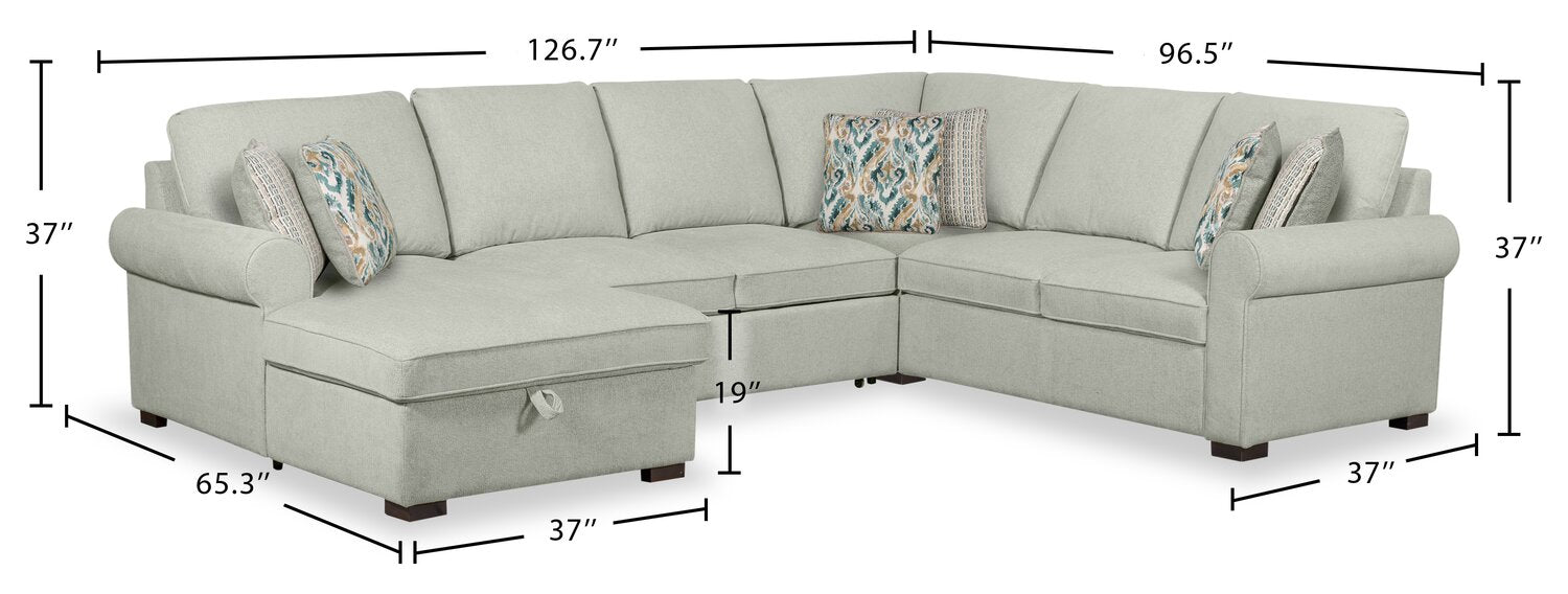 Sofa-lit sectionnel de gauche Haven de Scott Living 4 pièces en tissu de chenille avec fauteuil long de rangement - bleu écume de mer