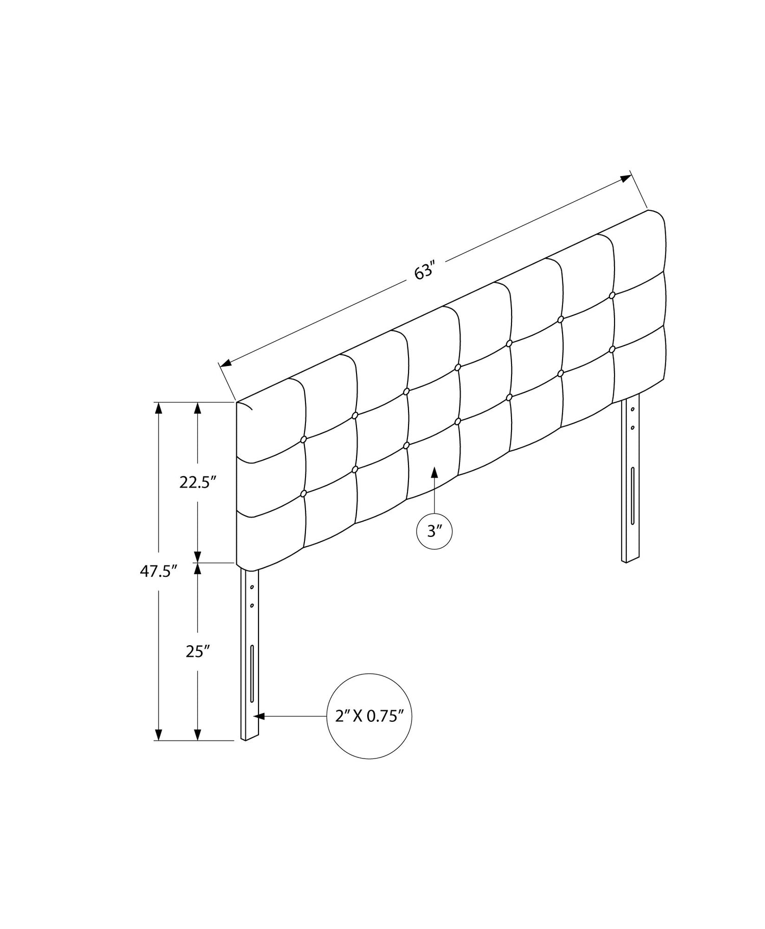 Largeur : 63 po (160,0 cm) Hauteur : 47,5 po (120,7 cm) Profondeur : 3 po (7,6 cm)