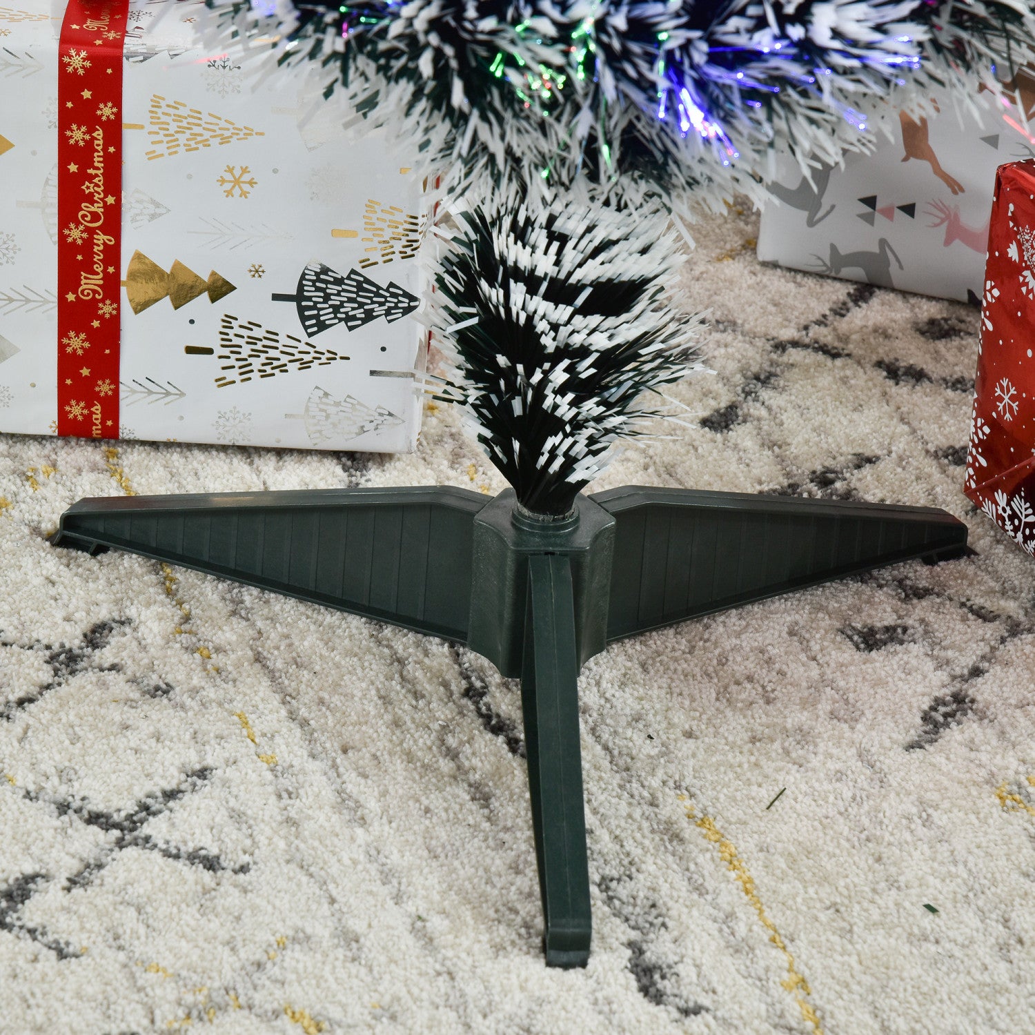 | Key Features | ●Beau vert arbre de Noel artificiel avec des centaines de petits cotes de neige epars ●Fait d'aiguilles en PVC dense avec 90 branches pour paraitre naturel et plein pour durer toute la saison ●Lumieres a fibre optique pre-eclairees en 3 couleurs placees sur tout l'arbre ●Comprend une decoration en forme d'etoile attachee a l'arbre ajoutant une lueur de festival a votre maison ●Des lumieres multicolores qui restent allumees meme si une ampoule grille ●Facile a assembler et a demonter pour le stockage ●Parfait pour la decoration d'interieur a Noel, dejoue l'atmosphere du festival ●CONFIGURATION RECOMMANDEE : Pour des resultats optimaux, travaillez de haut en bas en ecartant chaque branche dans un mouvement en spirale |