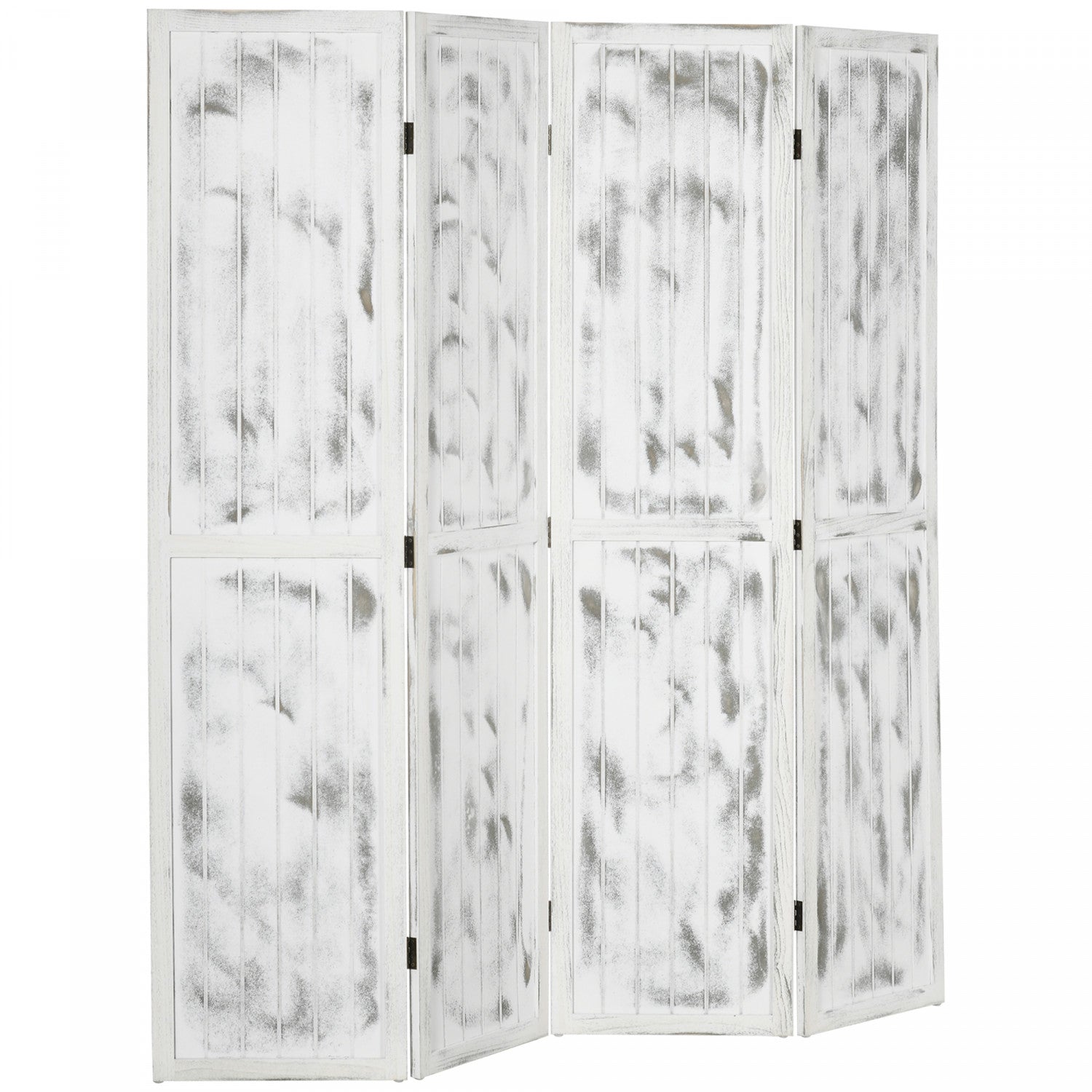 | Key Features | ● Ideal pour creer un espace prive ou diviser de grandes pieces ● Conception pliante avec quatre panneaux faciles a deplacer et peu encombrants ● Grain de bois blanchi a la chaux pour une touche rustique ● Neuf charnieres metalliques a etendre et a plier pour une position personnalisee ● Aucun assemblage requis |