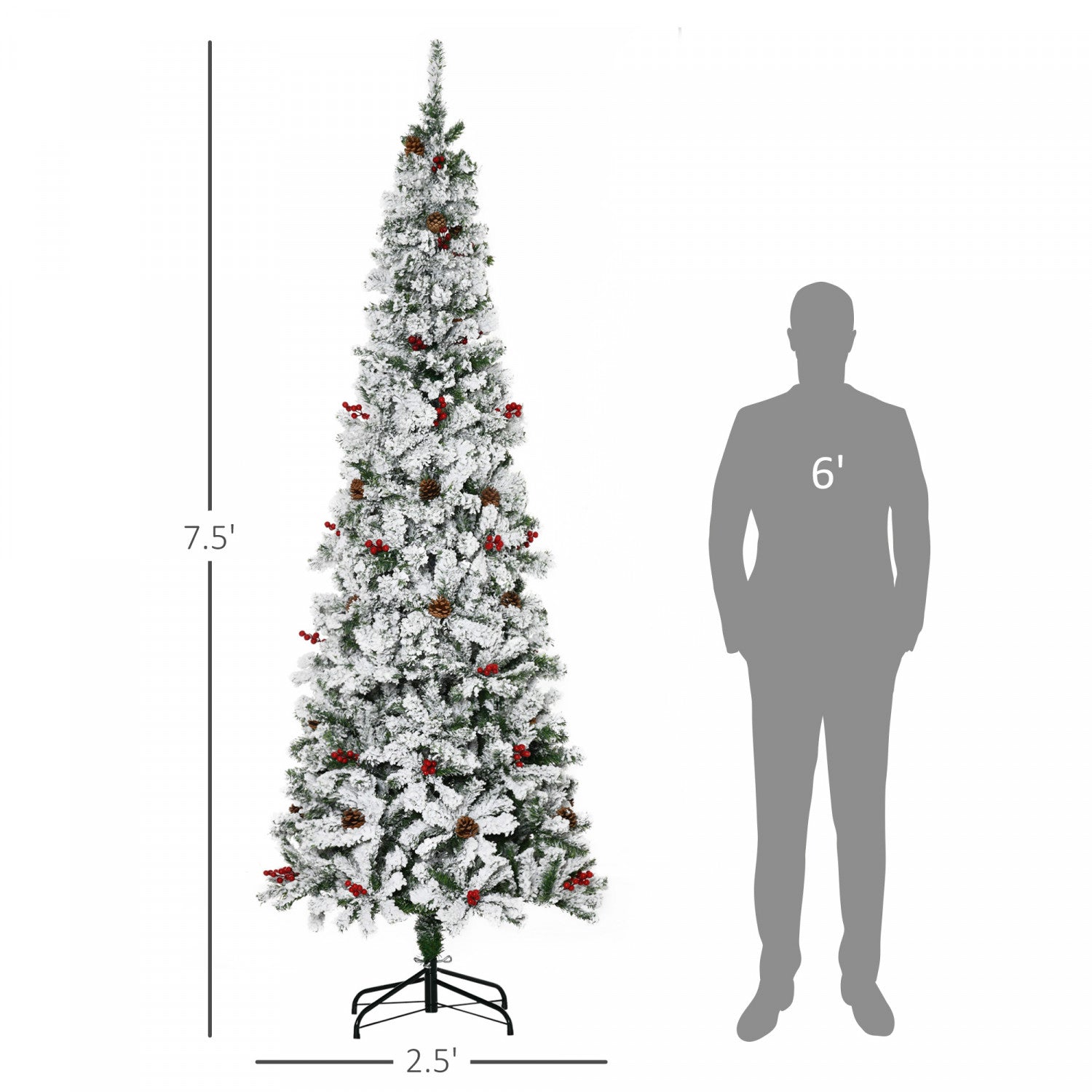 | Key Features | ●7.5 ft de haut, luxuriant avec une forme de pin, des pommes de pin et des baies rouges qui donnent un aspect sain et naturel ●Vaporise de neige artificielle pour ajouter un aspect hivernal ●La forme de crayon ne prend pas beaucoup de place sur le sol ou sur la table, convenant aux petites pieces ou a un deuxieme arbre de Noel dans une entree ●Construction a charniere/conception en sections/branches s'ouvrant automatiquement pour une installation rapide ●Les branches ignifuges ne risquent pas de prendre feu ou de causer de graves dommages domestiques ●Base solide et durable pour une meilleure stabilite |