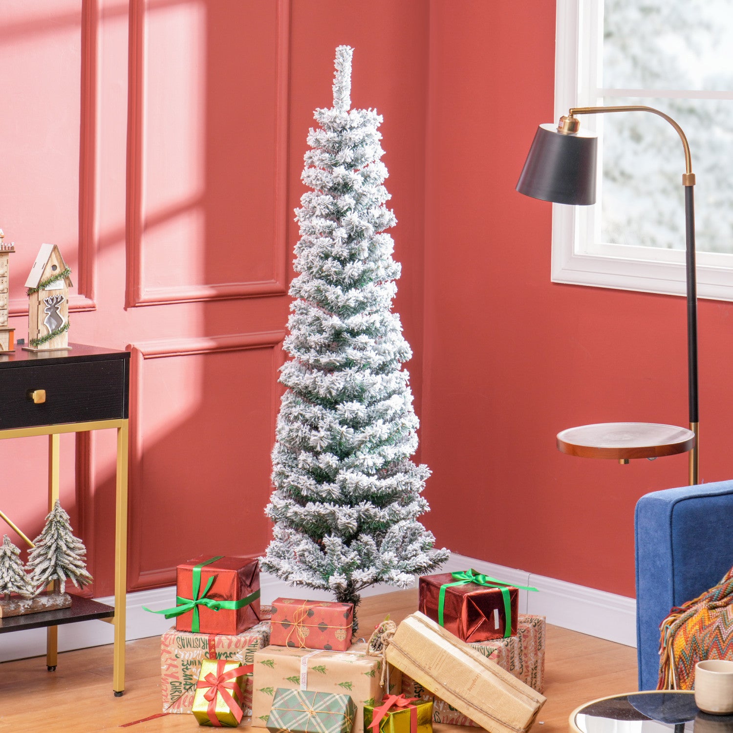 Apportez la nature a la maison sans le desordre avec cet arbre de Noel artificiel de HOMCOM. Notre magnifique arbre de vacances offre une excellente alternative aux arbres conventionnels avec une installation facile et peu de degats ou d'entretien requis. Concu en forme de pin plein, cet arbre de Noel artificiel floque se compose de pointes en plastique corsees et realistes.