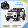 | Renseignements supplémentaires | Color: White Materials: PP, Metal Product Dimensions: 40.5" x 25.5" x 22" (L x W x H) Size of Seat: 13" x 8" x 12" (L x W x H) Net Weight: 27.5 lbs Weight Capacity: 66 lbs Suitable Ages: 3-8 Years Old Battery: 12V, 7AH Charger Input: 100-240V, 0.5A, 50/60Hz Charging Time: 8-12 Hours Required Battery for Remote: 2 x AAA Batteries (Not Included) Package Includes: 1 x Kids Ride on Police Car 1 x Remote 1 x Charger 1 x Instruction |