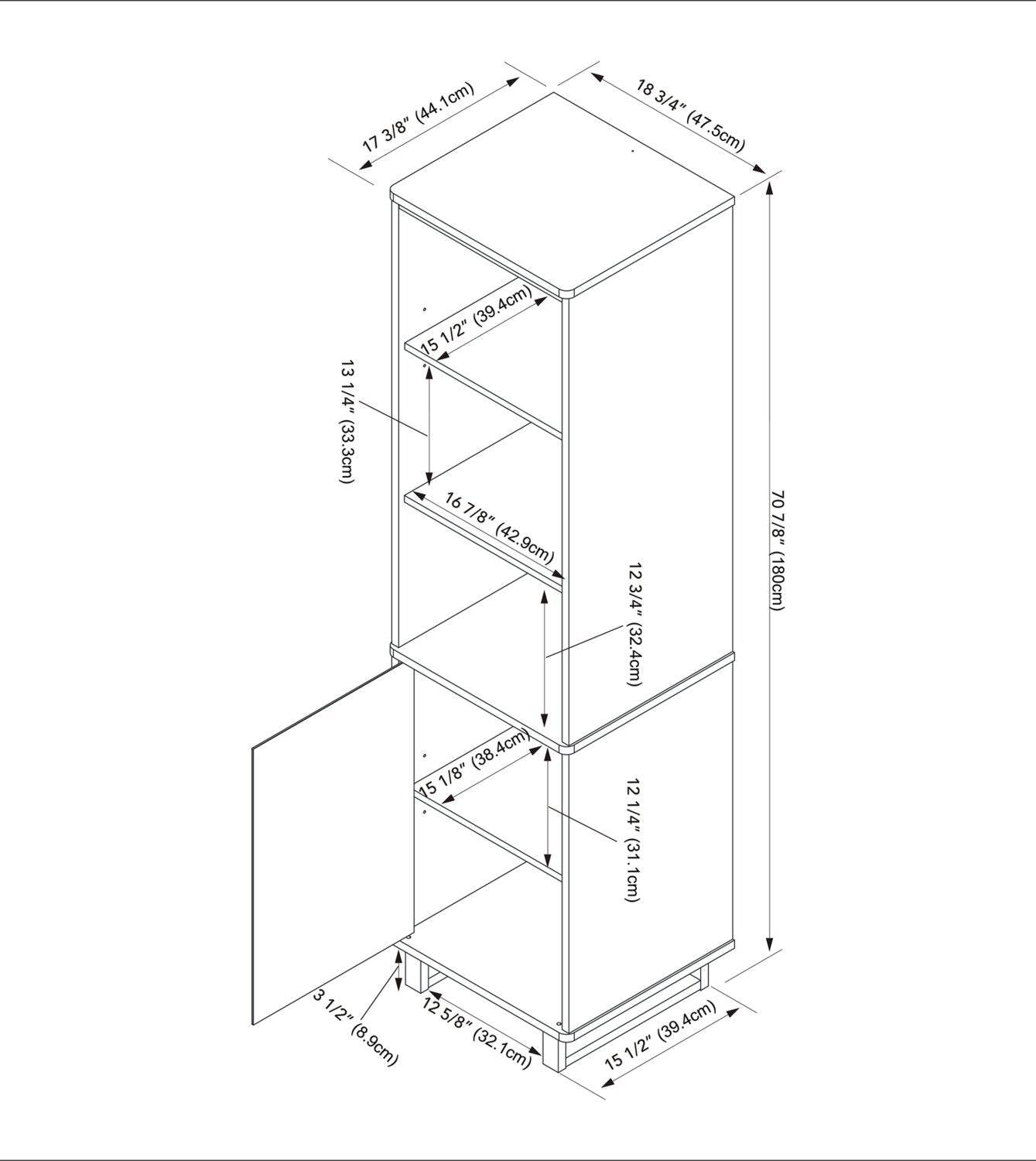 Largeur : 18,7 po (47,5 cm) Hauteur : 70,87 po (180,0 cm) Profondeur : 17,36 po (44,1 cm)