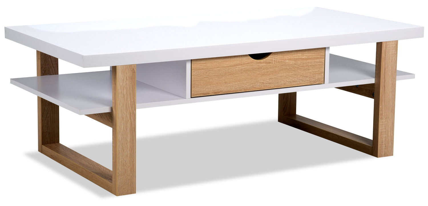 | Détails décoratifs | La délicate teinte de bois des pattes contraste avec la surface blanche pour une apparence moderne deux couleurs. |