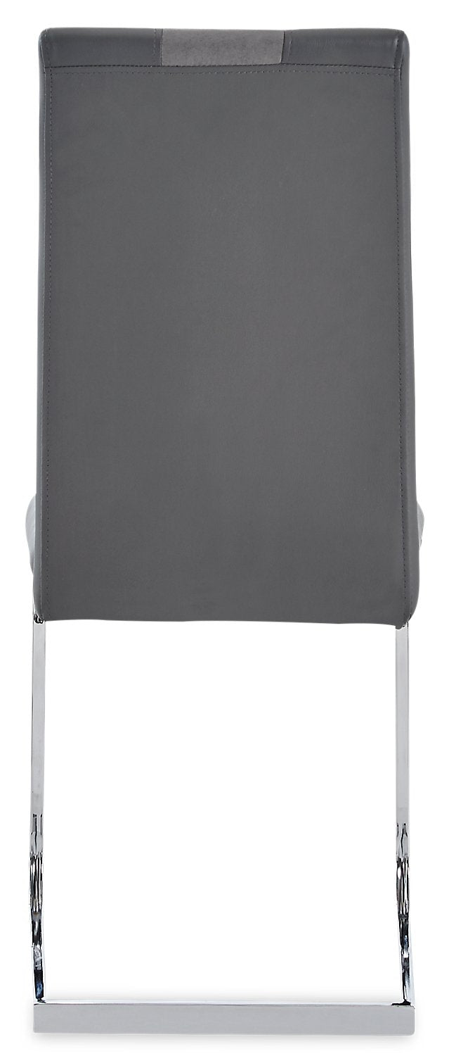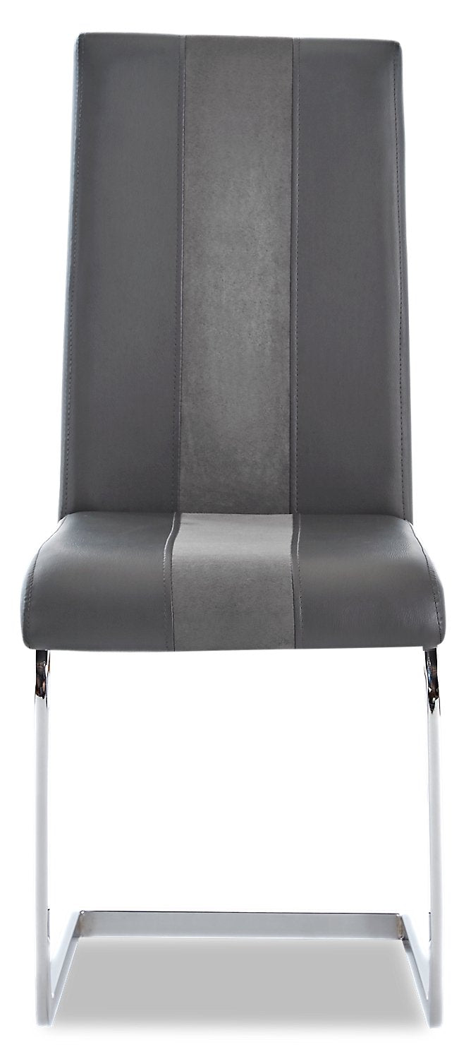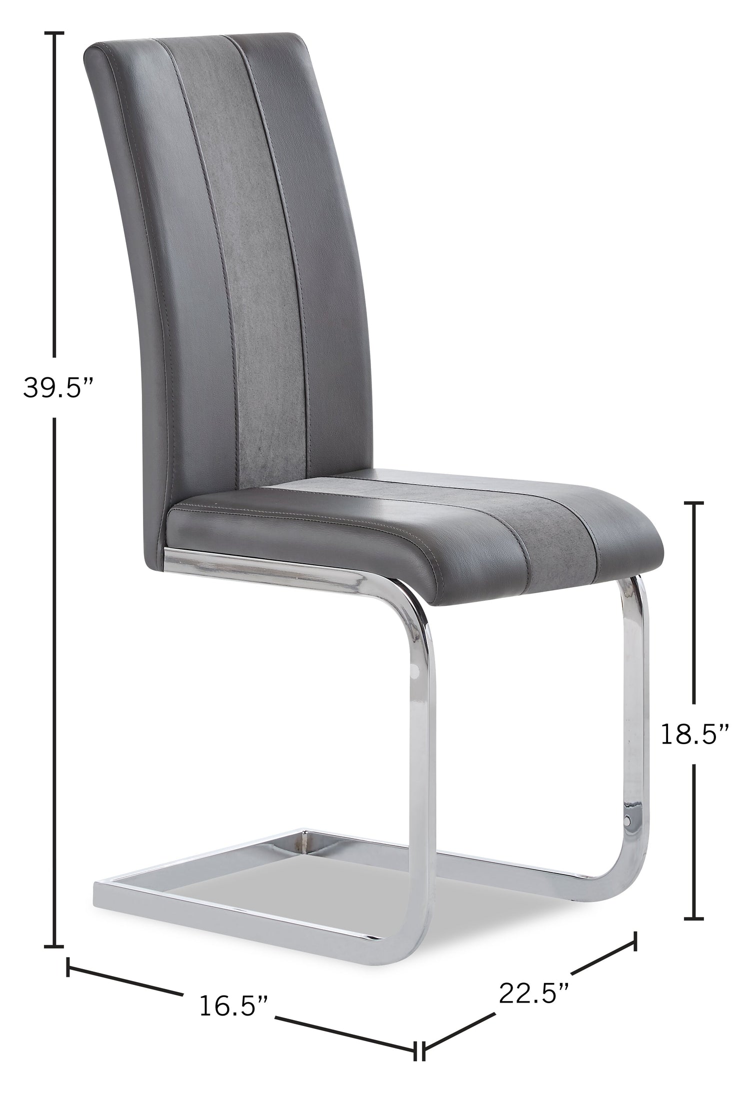 | Détails décoratifs | Une bande de tissu gris plus pâle se prolonge le long du centre de la chaise. |