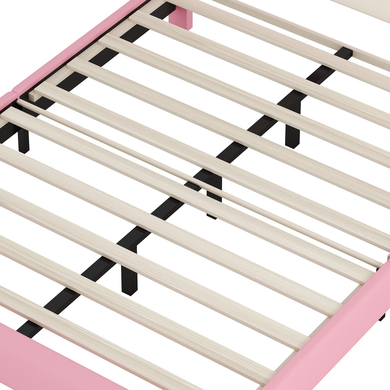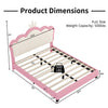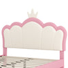 Lit Princesse Judson Tapisse Avec Tete De Lit En Forme De Couronne Et Cadre Plateforme En Pu, Taille Full, Rose