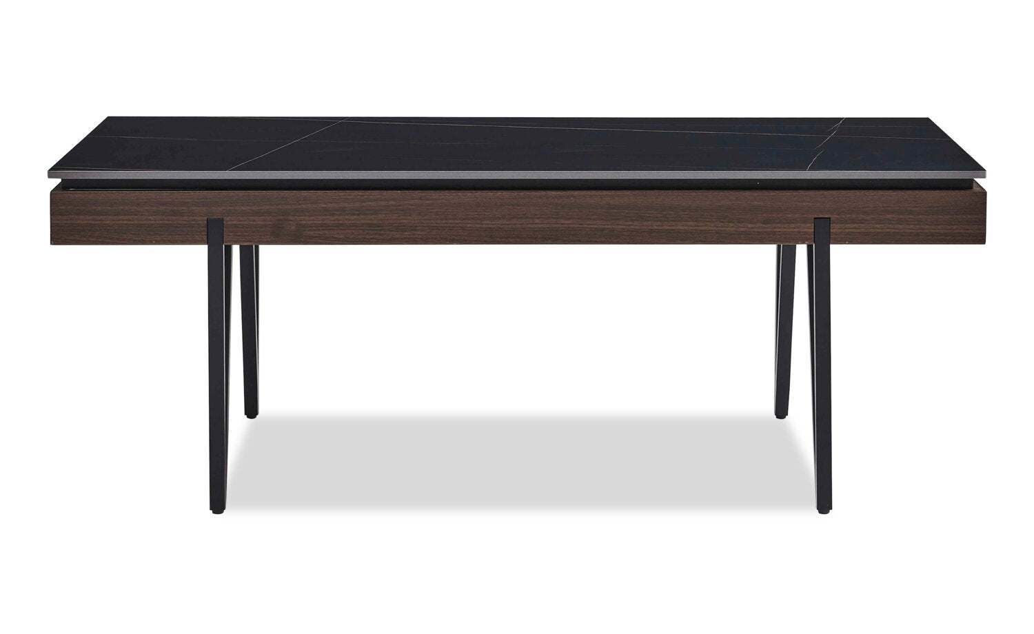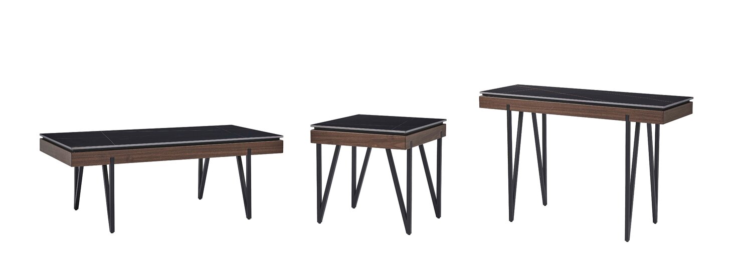 | Couleur du fini | Pierre frittée noire avec bois brun et pattes en métal noir |