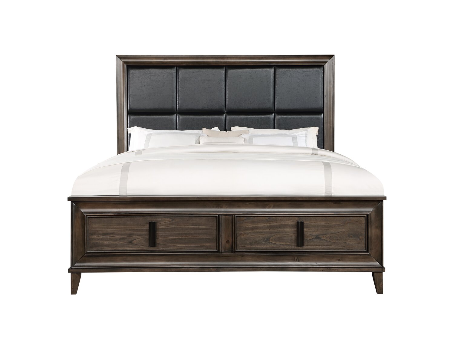 Lit plateforme de rangement Kane en cuir végétalien avec tête de lit et cadre de lit, brun - format très grand lit