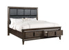 Lit plateforme de rangement Kane en cuir végétalien avec tête de lit et cadre de lit, brun - format très grand lit