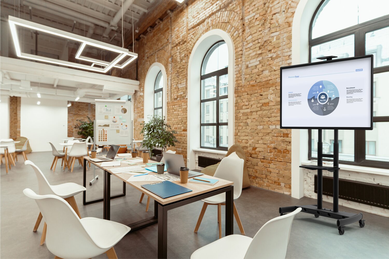 Peut soutenir 200 lb : Tablette et plateau inclus : Hauteur réglable : Élégant système de gestion des câbles : Base compacte : Mouvement facile : |